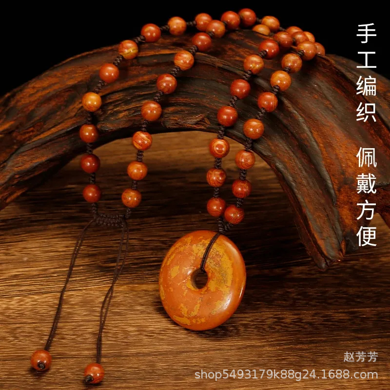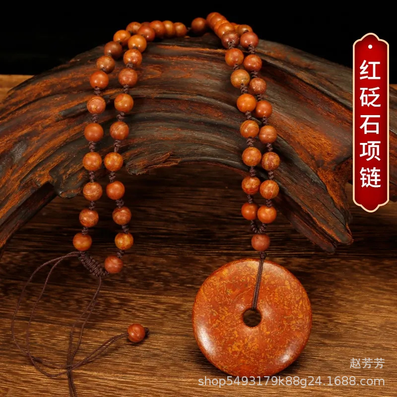 Natural Sibin Red Stone Buckle Pendant Turquoise Stone Buckle Necklace Women's Hand-woven Necklace Men's Pendant