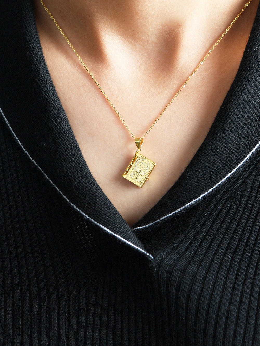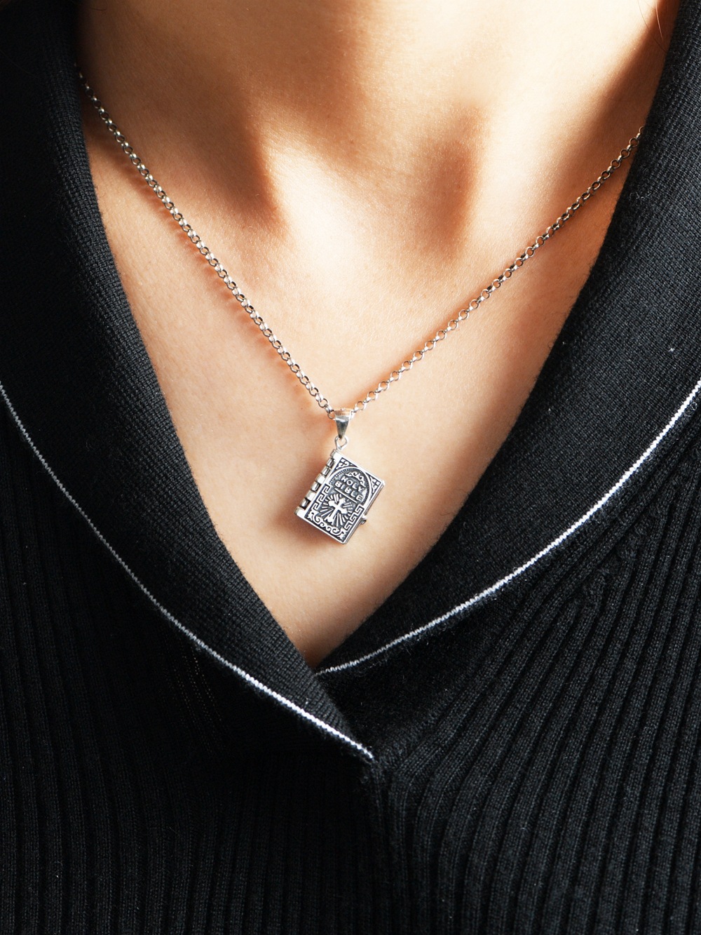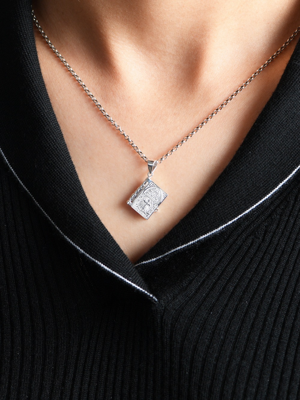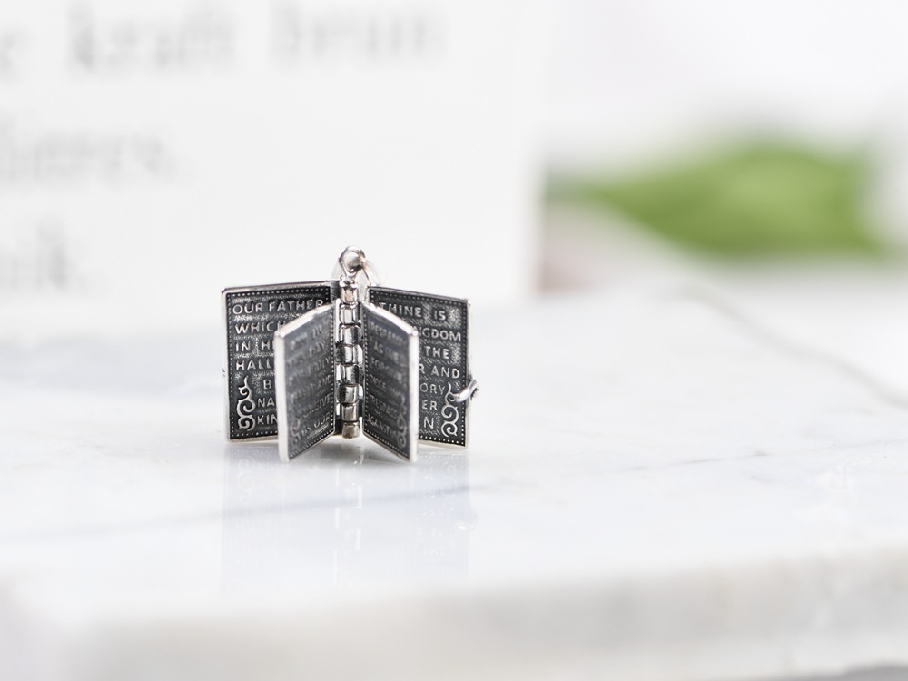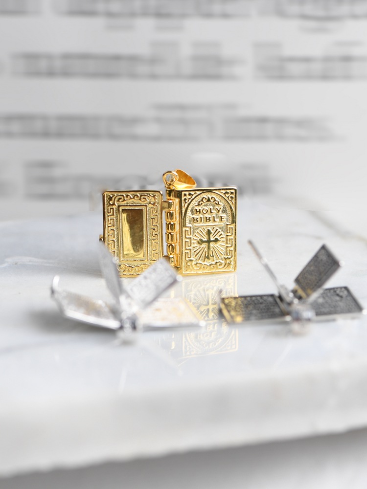 Golden Deer King S925 Silver Pendant Retro Niche Craft Openable Bible Book Clavicle Chain Pendant Women's Cross-Border Silver Jewelry
