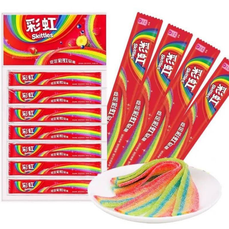 Packaging specifications: Green arrow [colorful fruity] eat rainbow sour strip gummies 9g*48 pieces (single hanging)