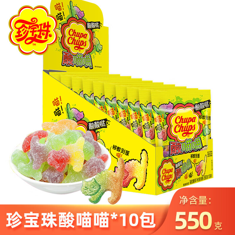 Packaging specifications: Chupa chups 550g [sour meow meow] sour 55g*10 bags (single box)