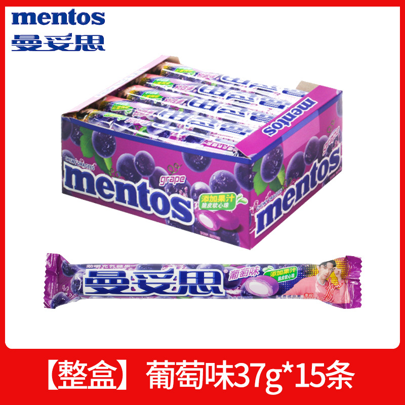 Packaging specifications: Mentos crispy soft candy [grape flavor] 37g*15 pieces (single box)
