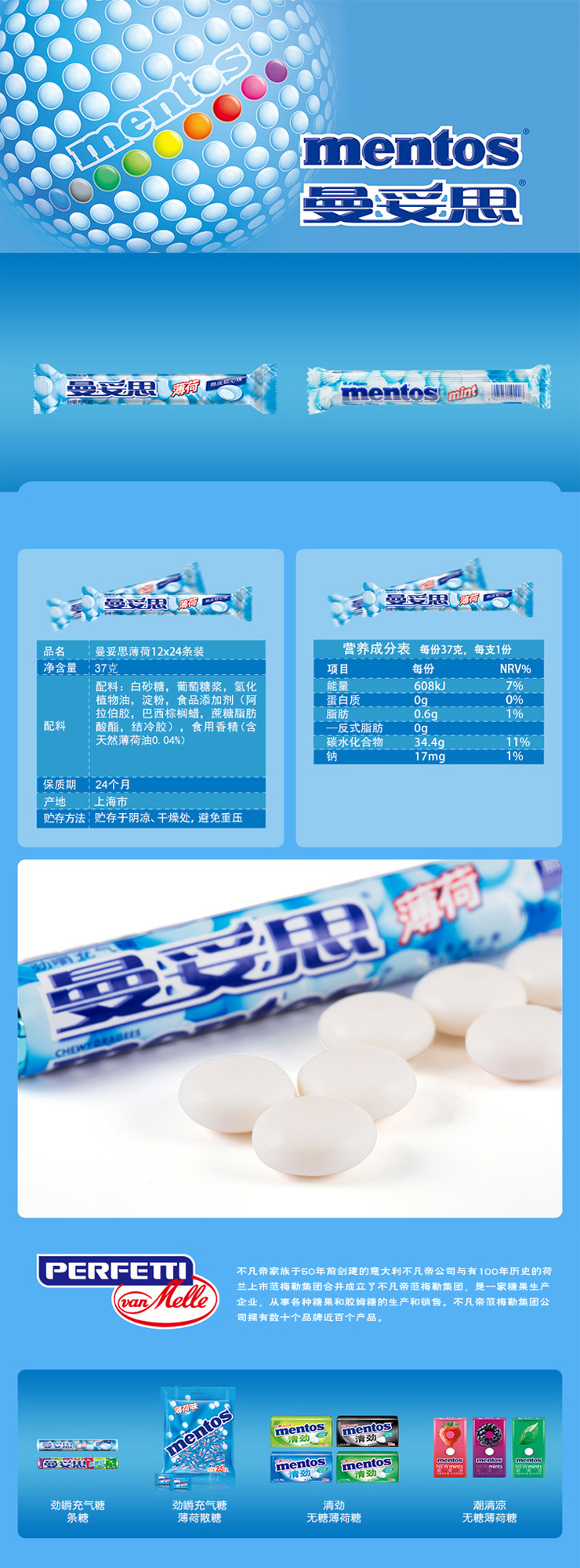 Packaging specifications: Mentos crispy soft candy [mint flavor] 37g*15 pieces (single box)