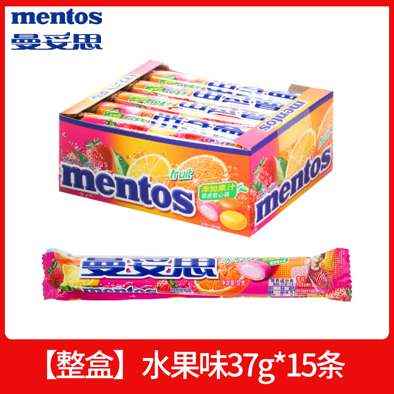 Packaging specifications: Mentos crispy soft candy [fruit flavor] 37g*15 pieces (single box)