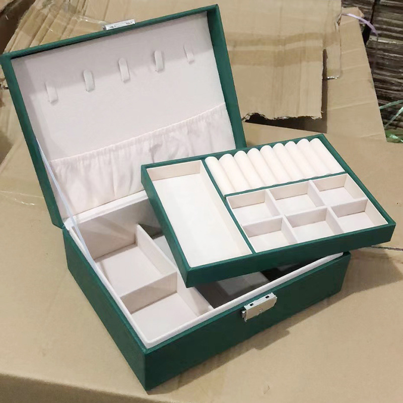 Double Layer PU Leather Jewelry Storage Box with Lock Earrings Ring Jewelry Storage Box Jewelry Packaging Box Jewelry Box