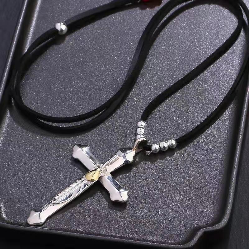 Taijiao Chain Set Chain Takahashi Wulang Style Feather Cross Necklace Women and Men's Woolen Chain Yu Wenle Same Style