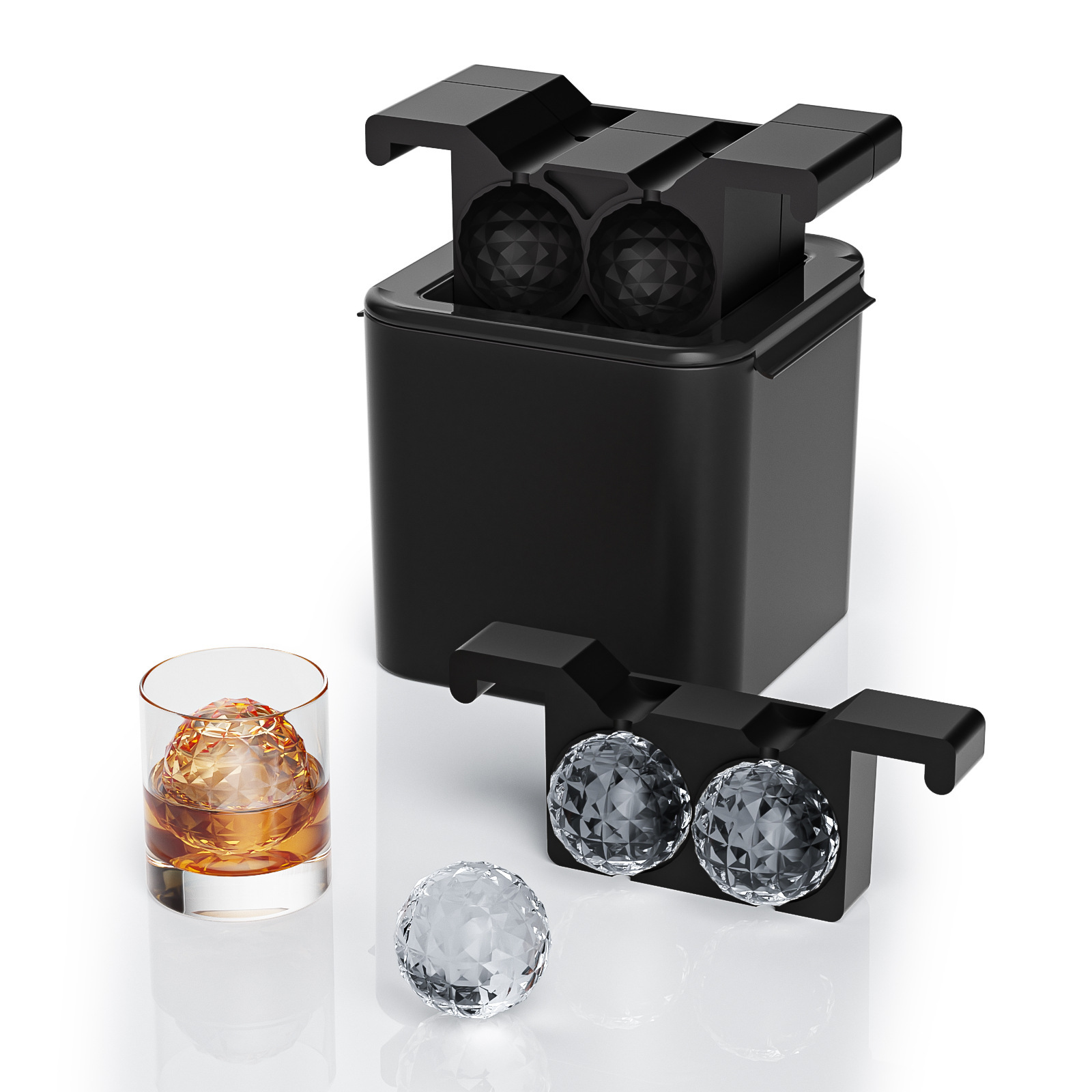 Transparent large ice hockey silicone ice mold whisky frozen ice cube box skull ice maker Diamond Crystal round shape