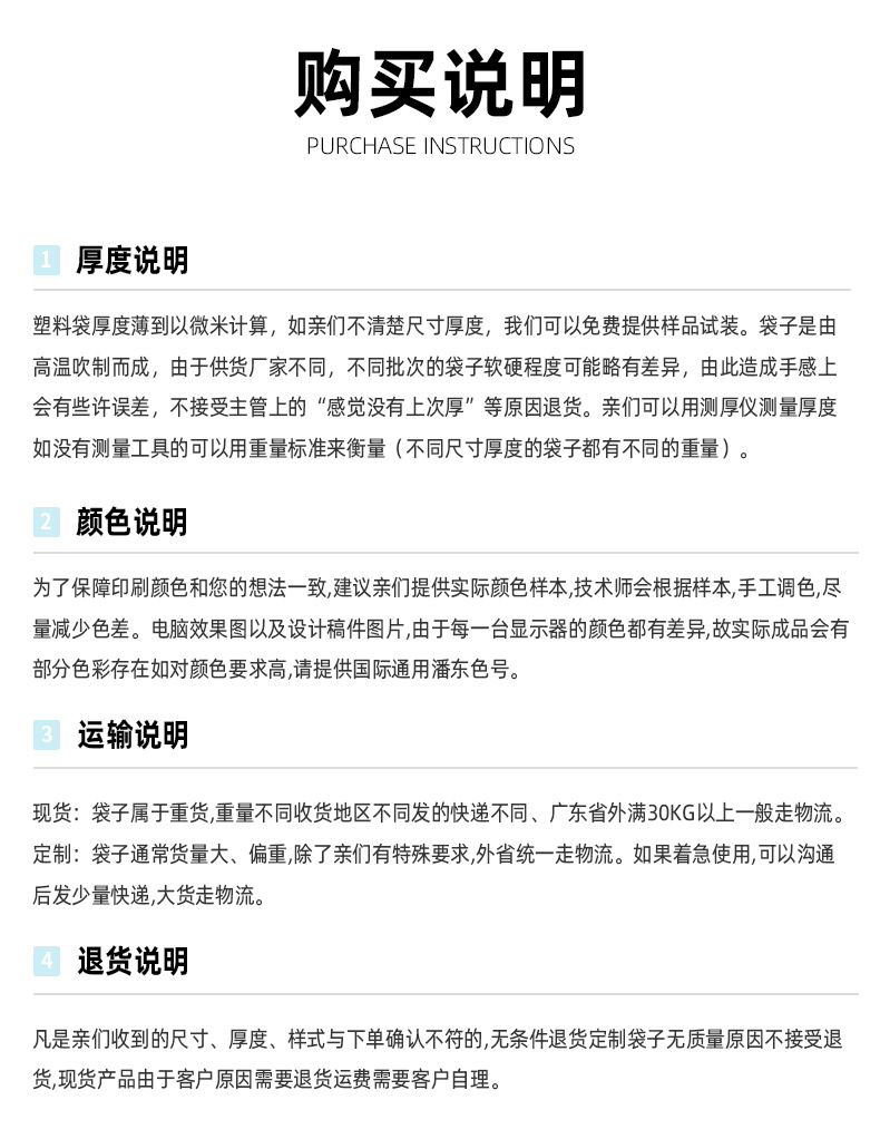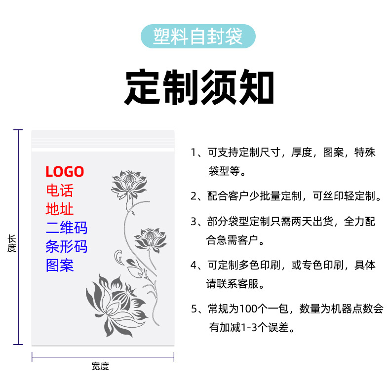 Specification model: No. 7 14cm*20cm*transparent*white edge 20 silk 100 pieces