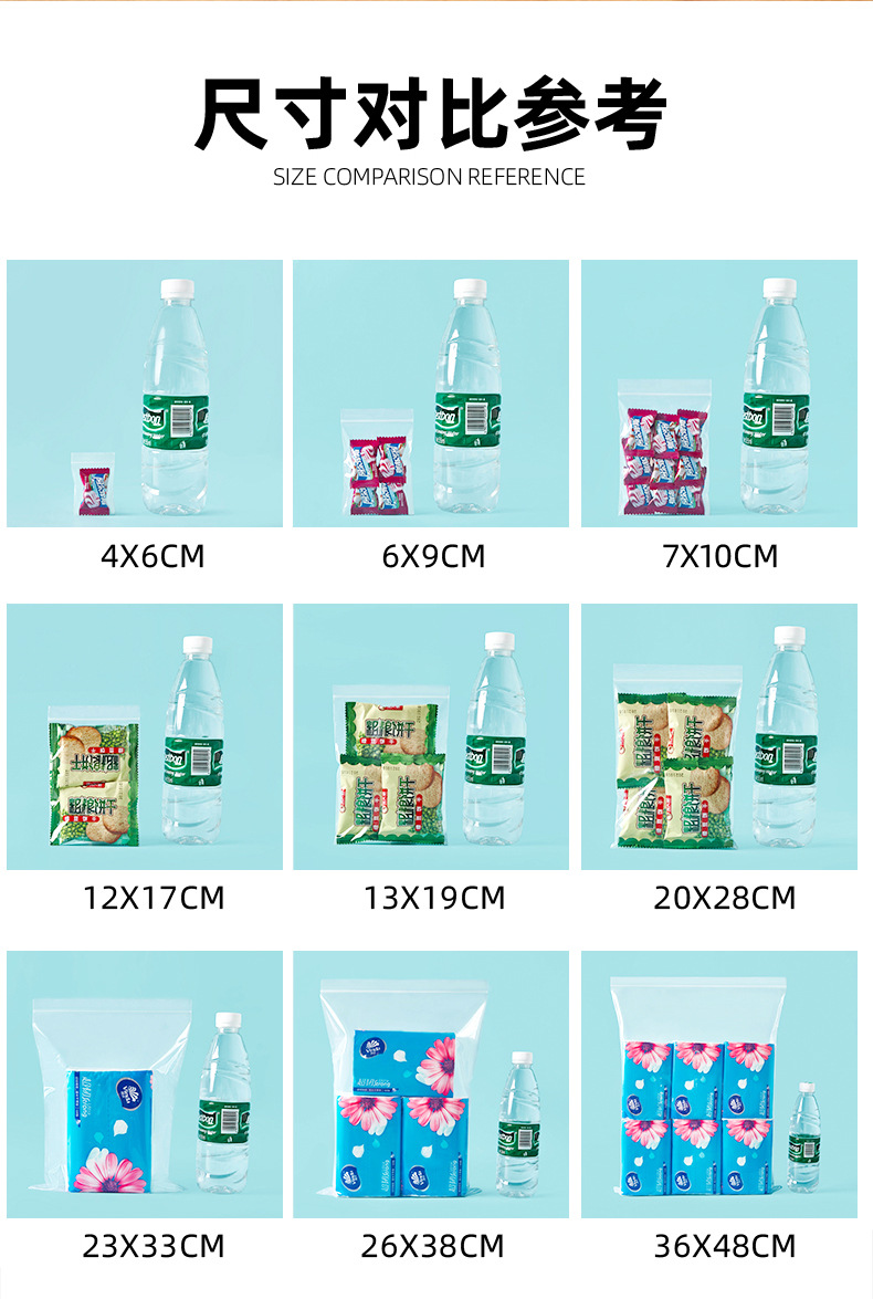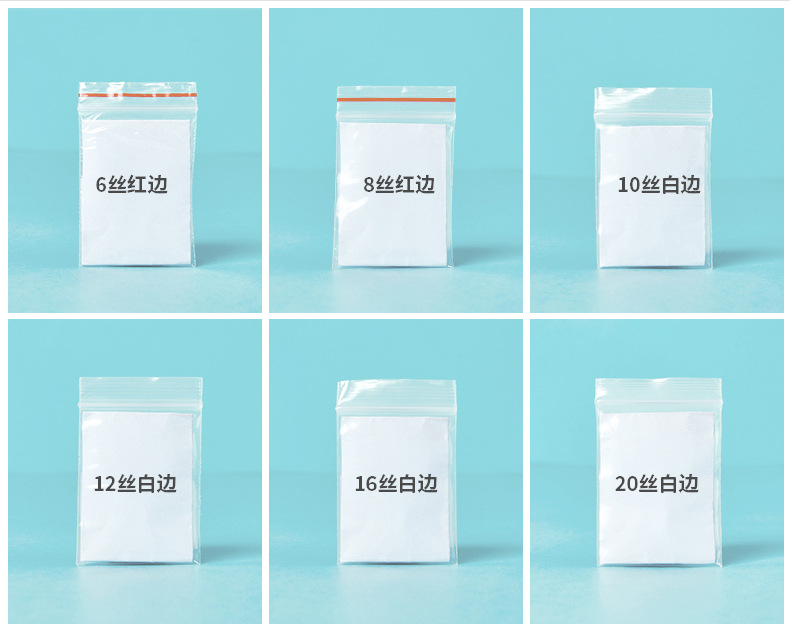 Specification model: No. 6 12cm*17cm*transparent*white edge 20 silk 100 pieces