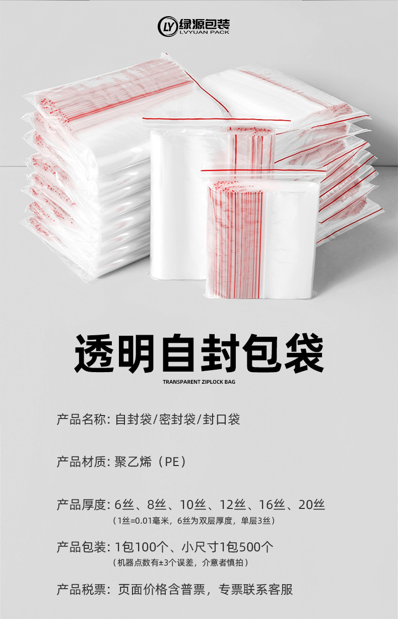 Specification model: No. 6 12cm*17cm*transparent*red edge 6 silk 100 pieces