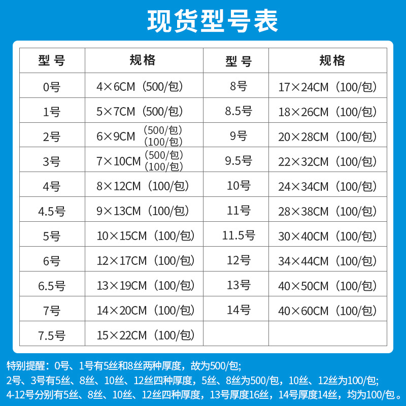 Specifications and models: 12 silk (thickened) * 7.5 15*22/100