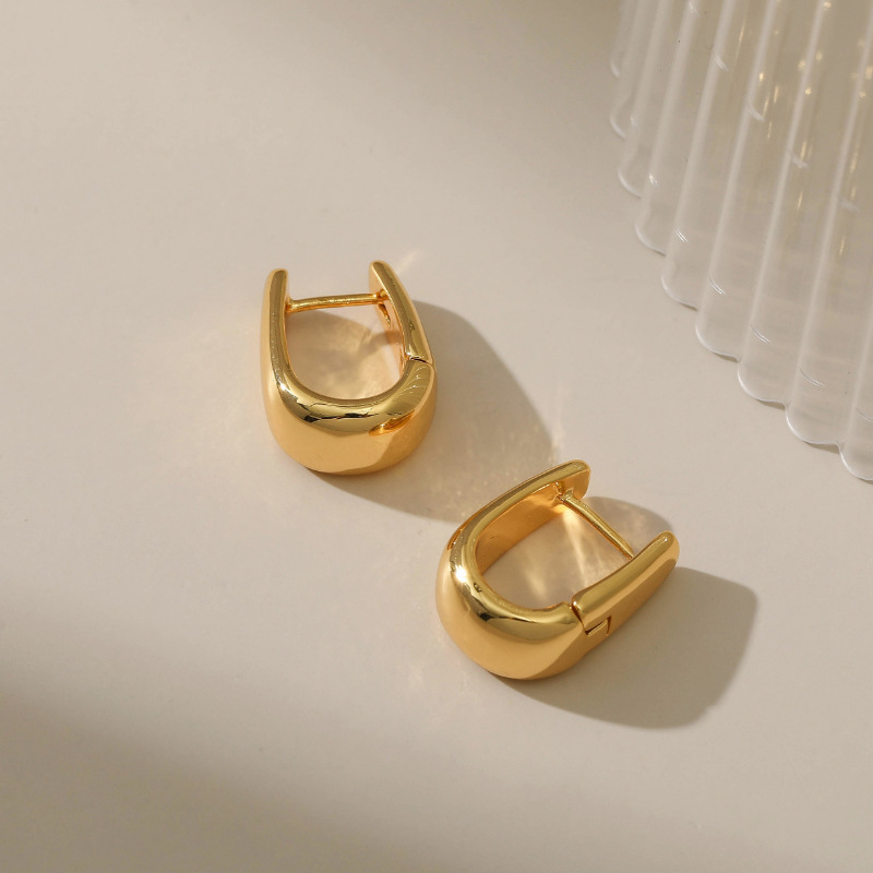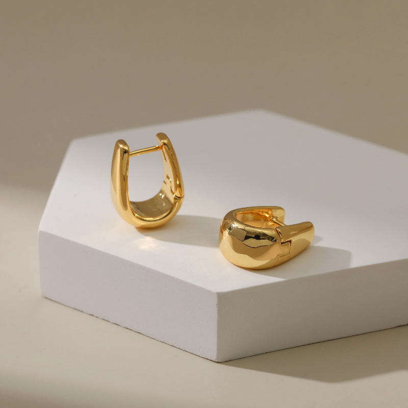 Bucket Square Ear Buckle European and American Copper Plated 18K True Gold Extremely Simple Ear Ring Ear Ring Water Drop Feeling Temperament Texturous Earrings Tide