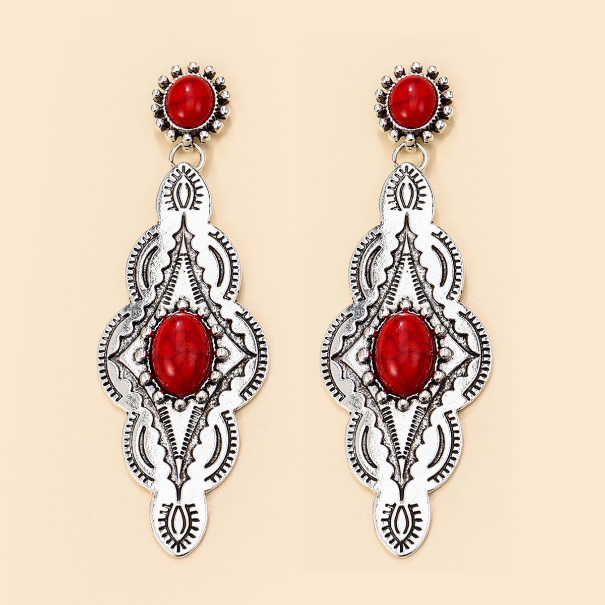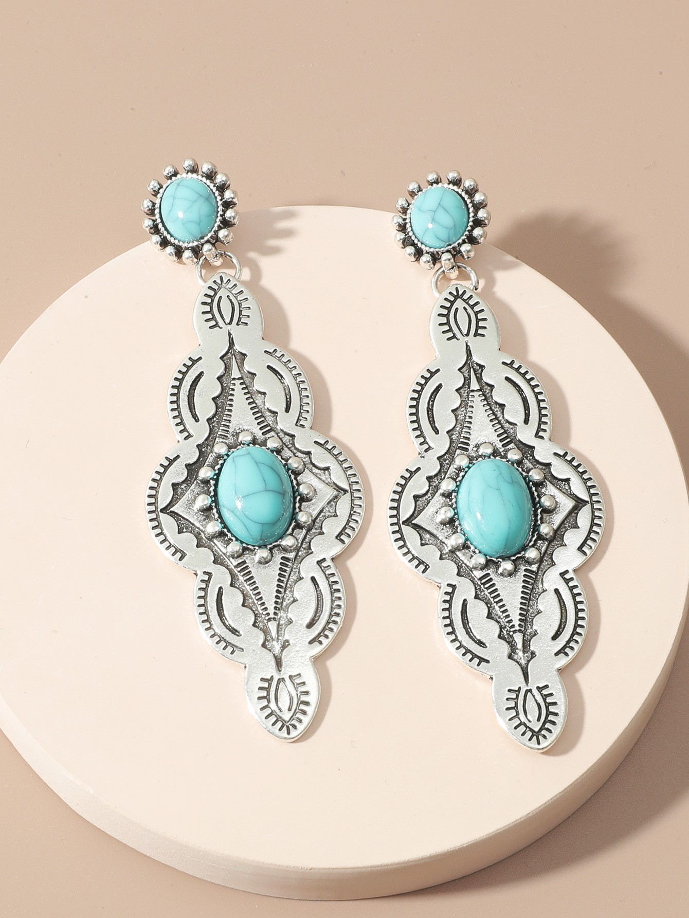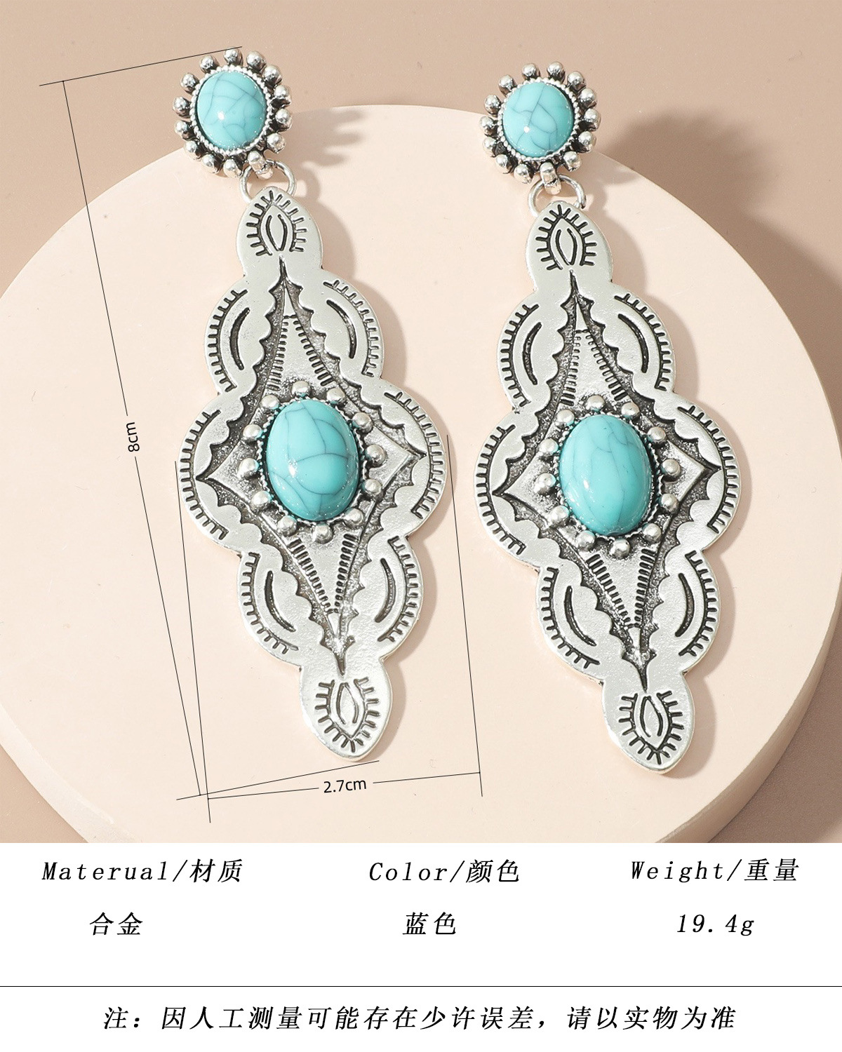 European and American ethnic style turquoise long earrings personality high-grade temperament alloy diy earrings earrings earrings