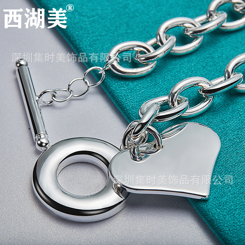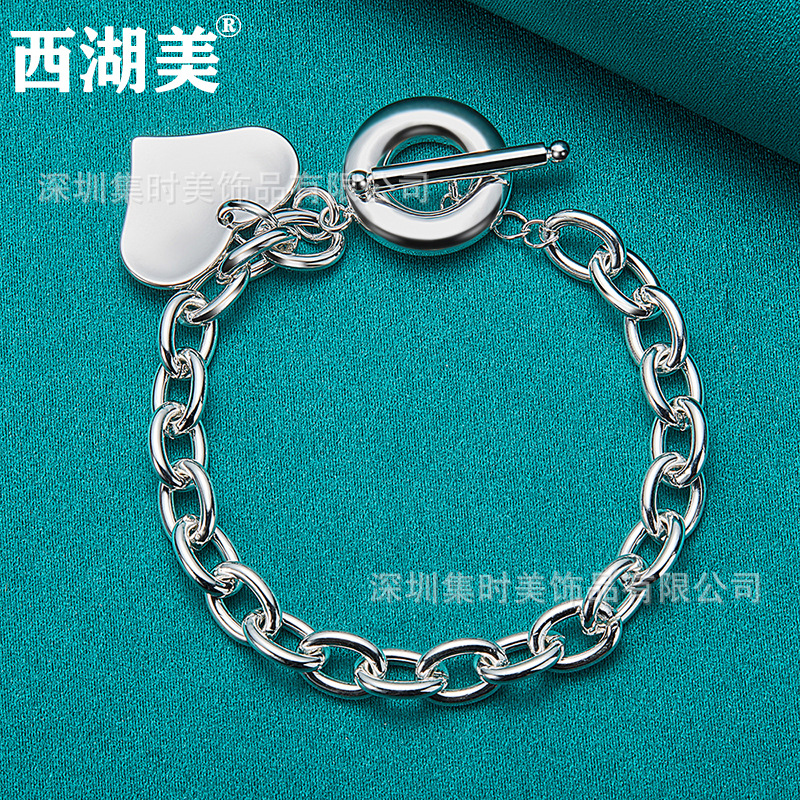 Flat glossy love tag otbuckle chain bracelet female jewelry West Lake beauty jewelry silver jewelry