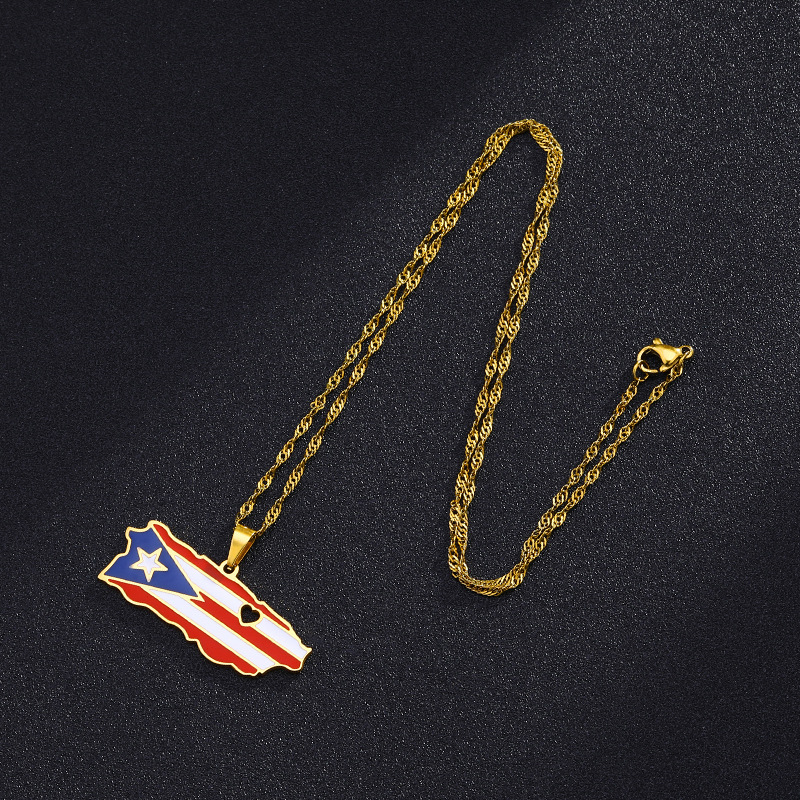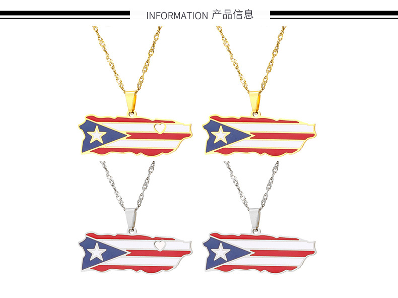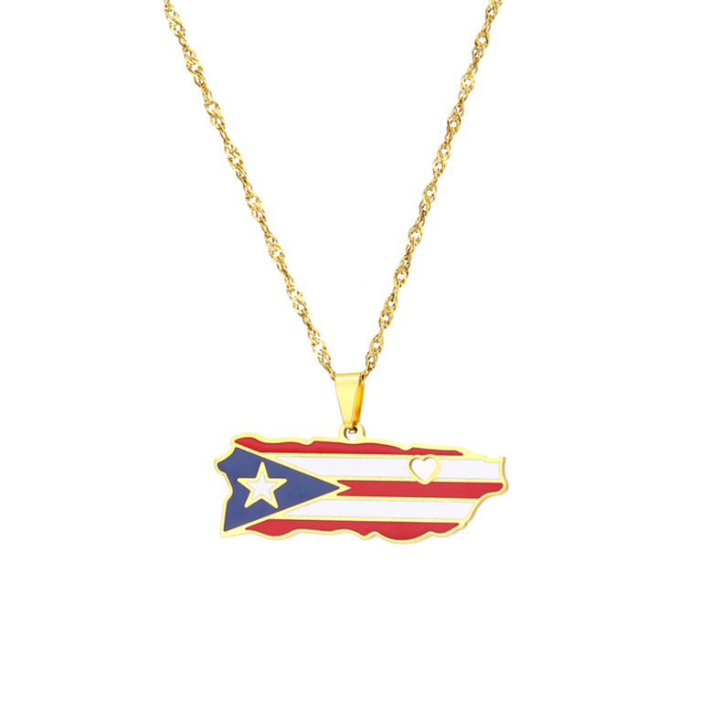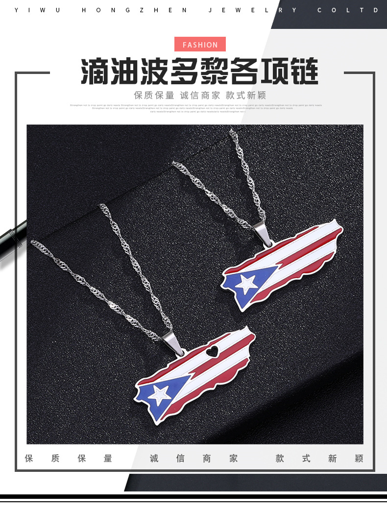 New European and American Hot-Selling Stainless Steel Puerto Rico Map Necklace Feminine Sweater Chain Women's Autumn and Winter Sweatshirt Chain Accessories