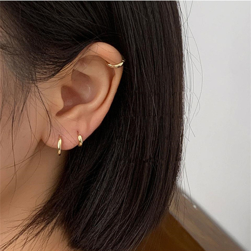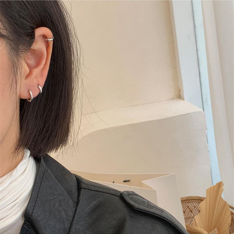All-matching European and American ins minimalist ring earrings South Korea cold style plain ring ring ear buckle multi-hole stacked earrings