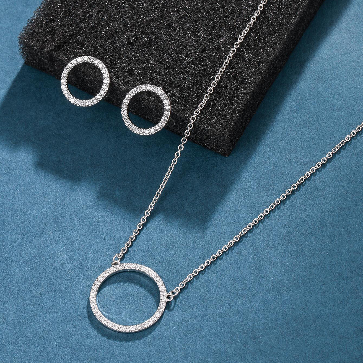 Elegant and High-End Round Micro-Paved Zircon Copper Earrings Necklace Set Women's Fashion Personalized Jewelry Bridal Jewelry