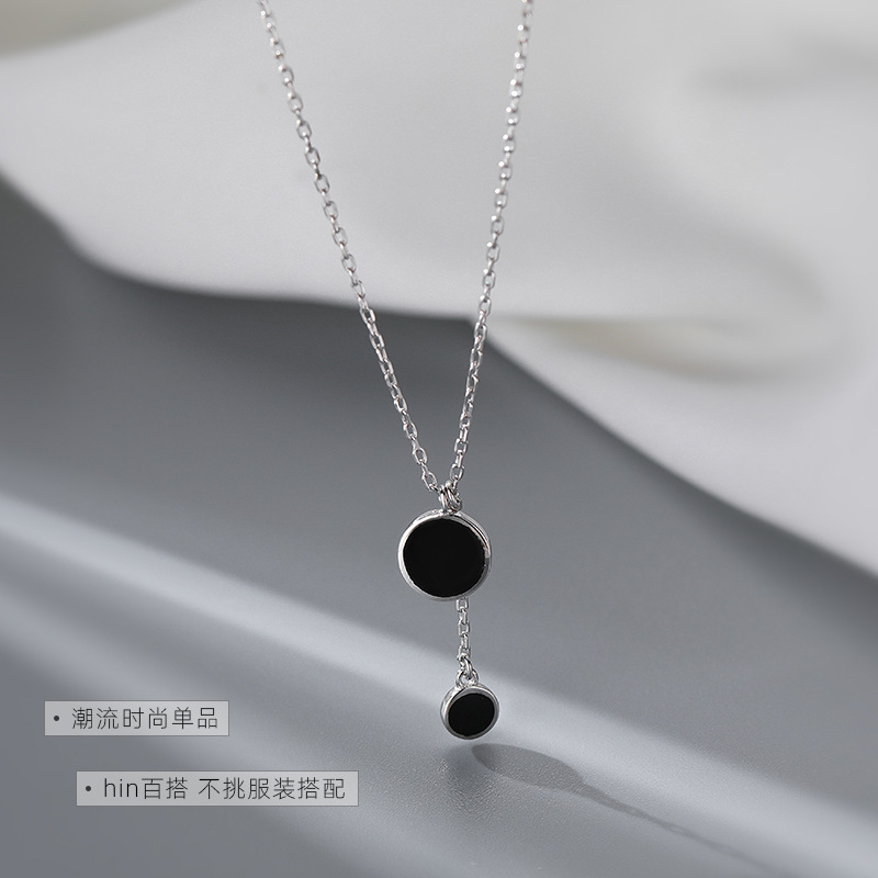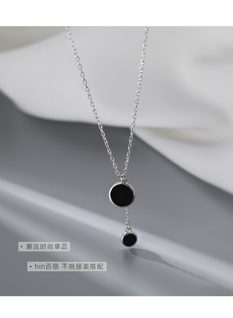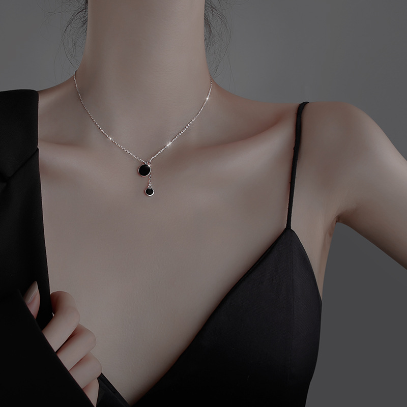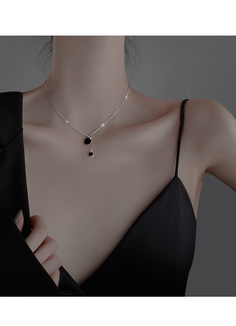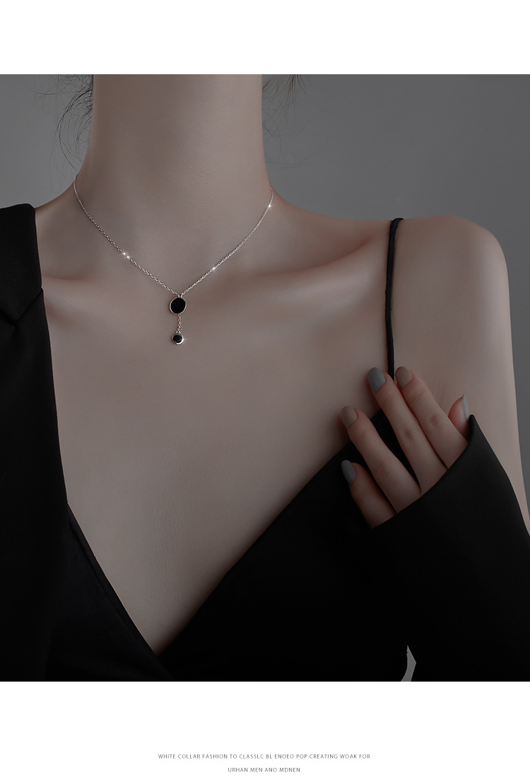Black Disc Necklace for Women Summer Niche Design Clavicle Chain Summer Silver Plated Necklace 2025 New Style for Women