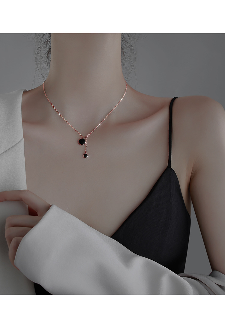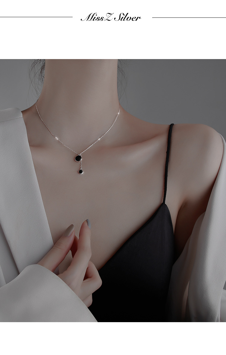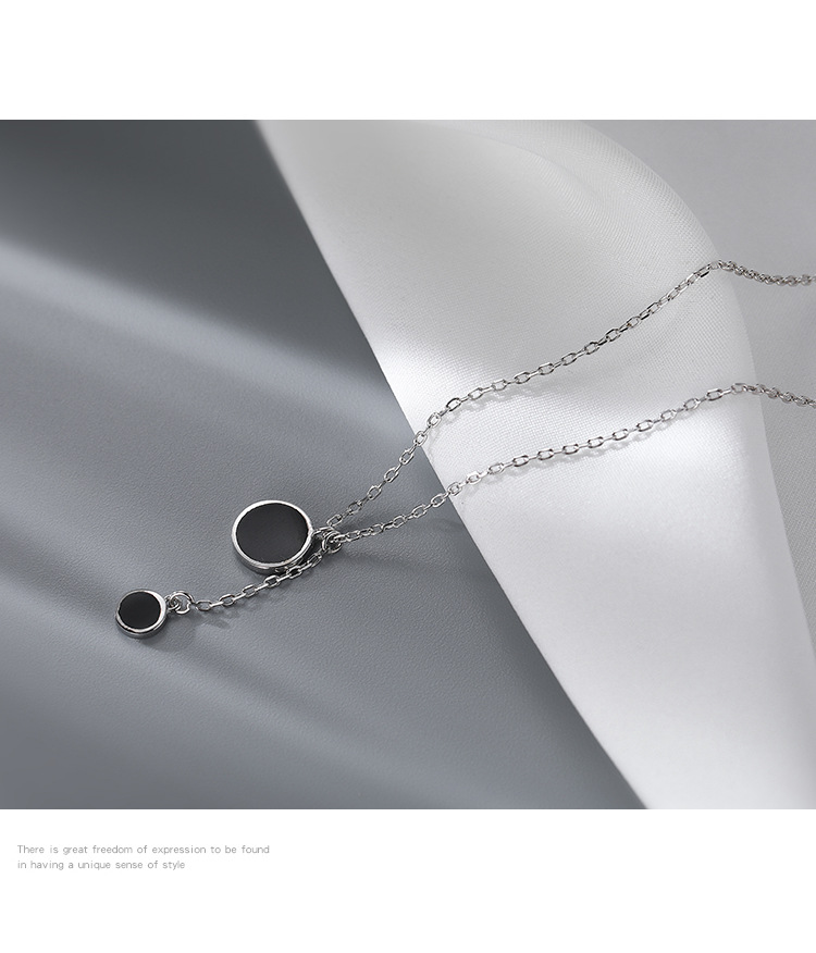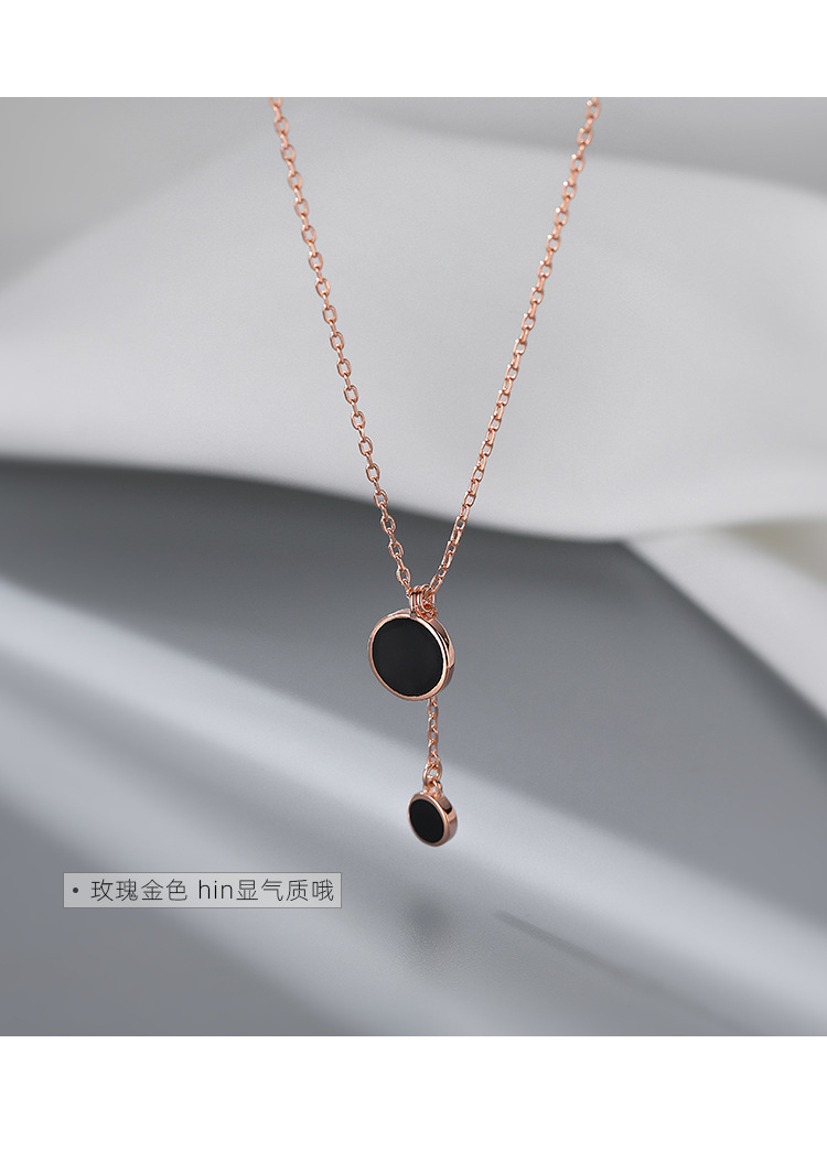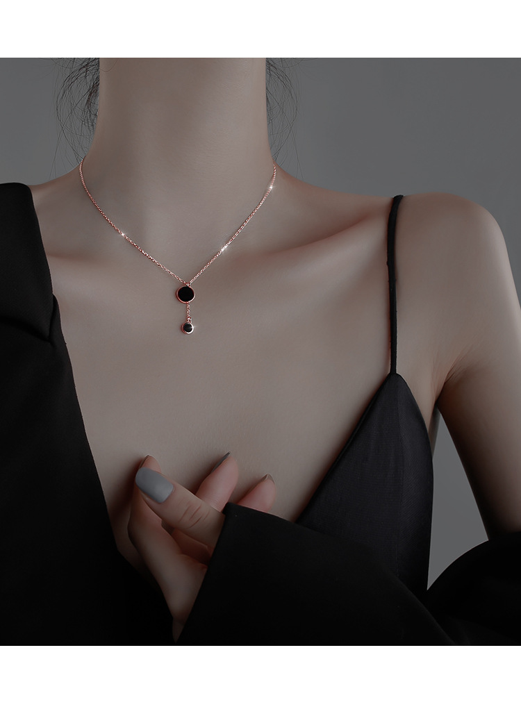 Black Disc Necklace for Women Summer Niche Design Clavicle Chain Summer Silver Plated Necklace 2025 New Style for Women