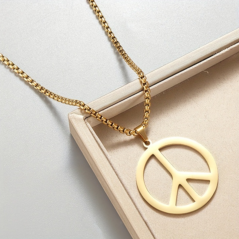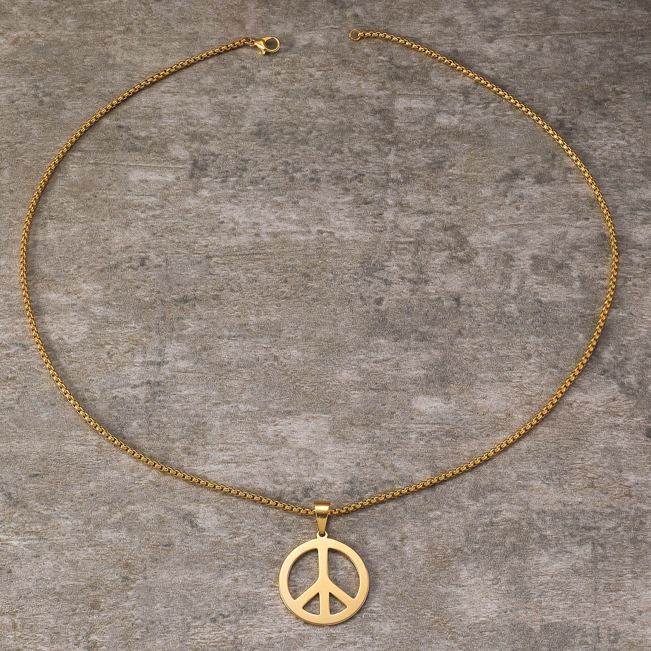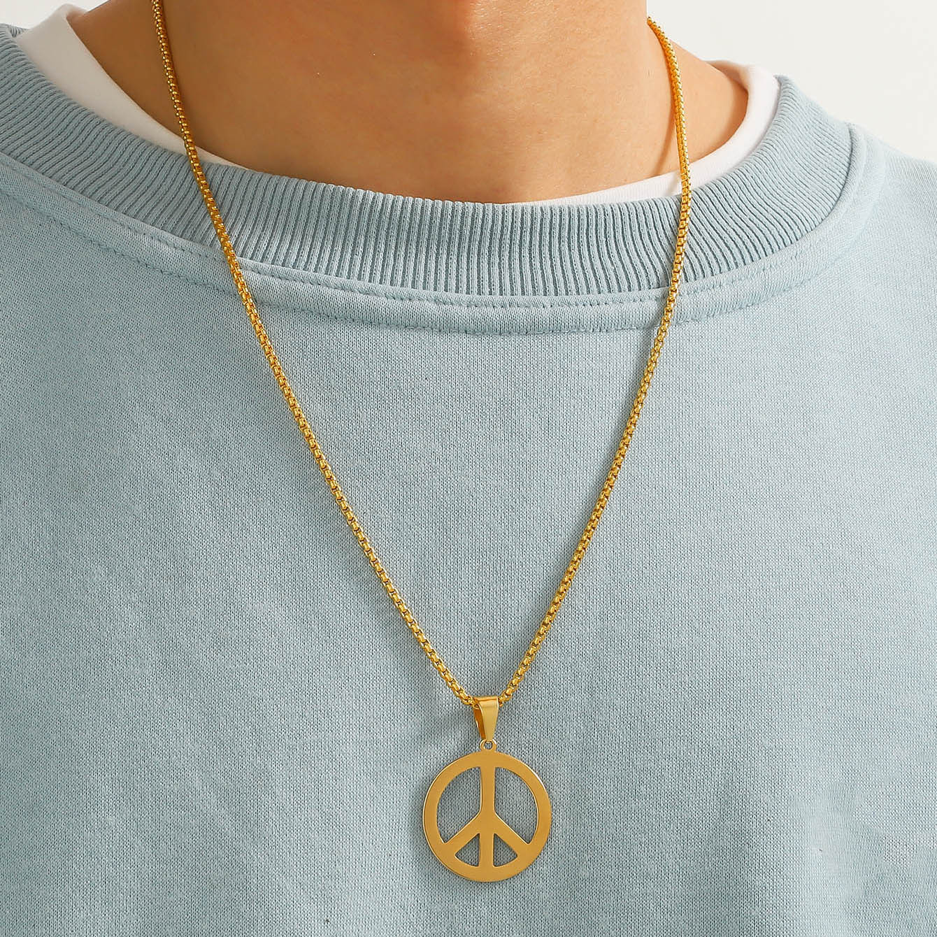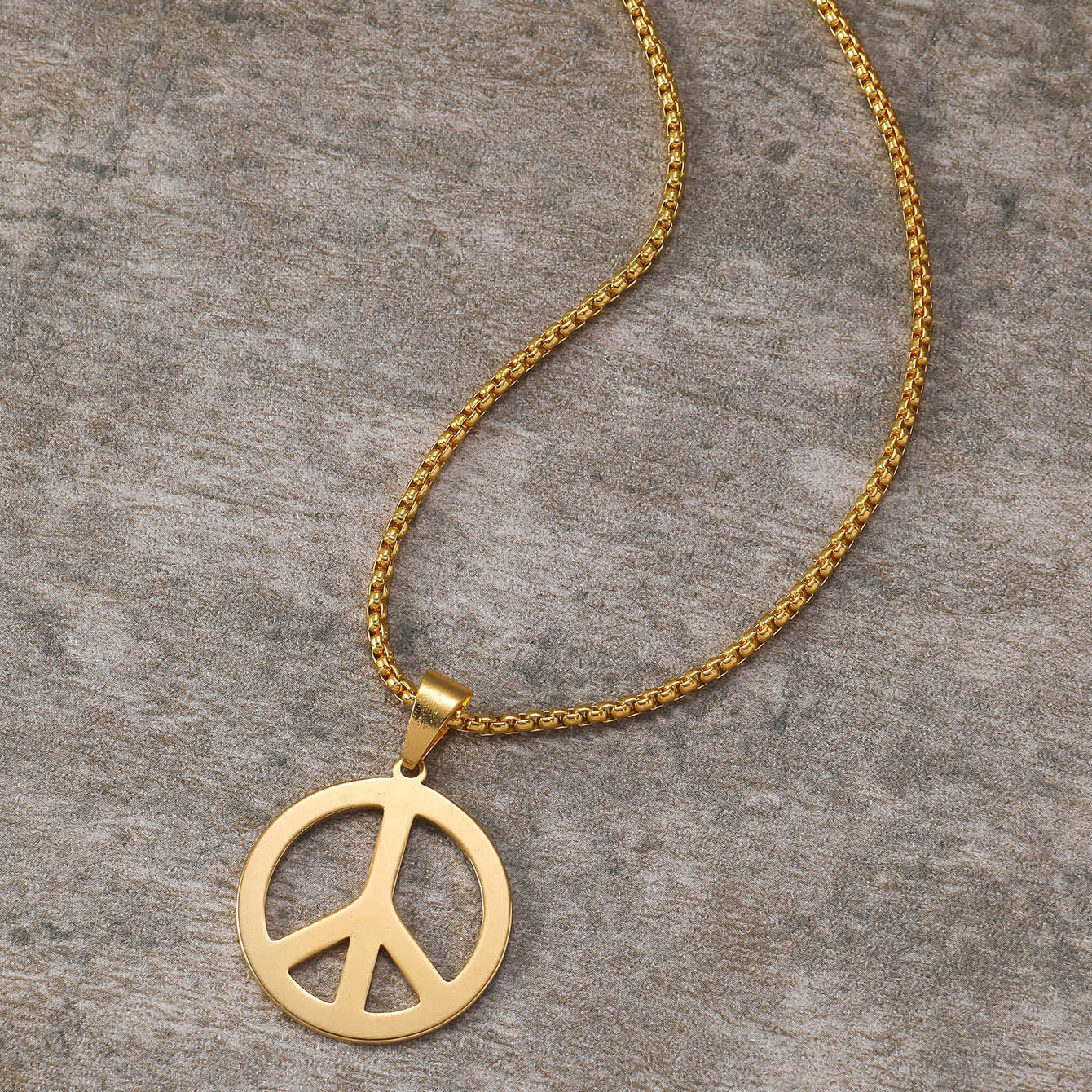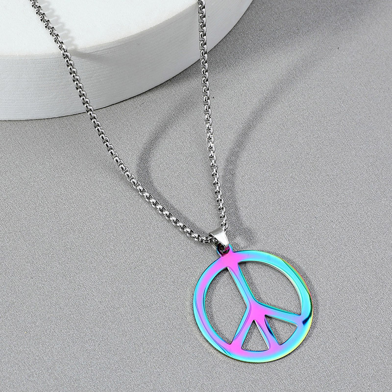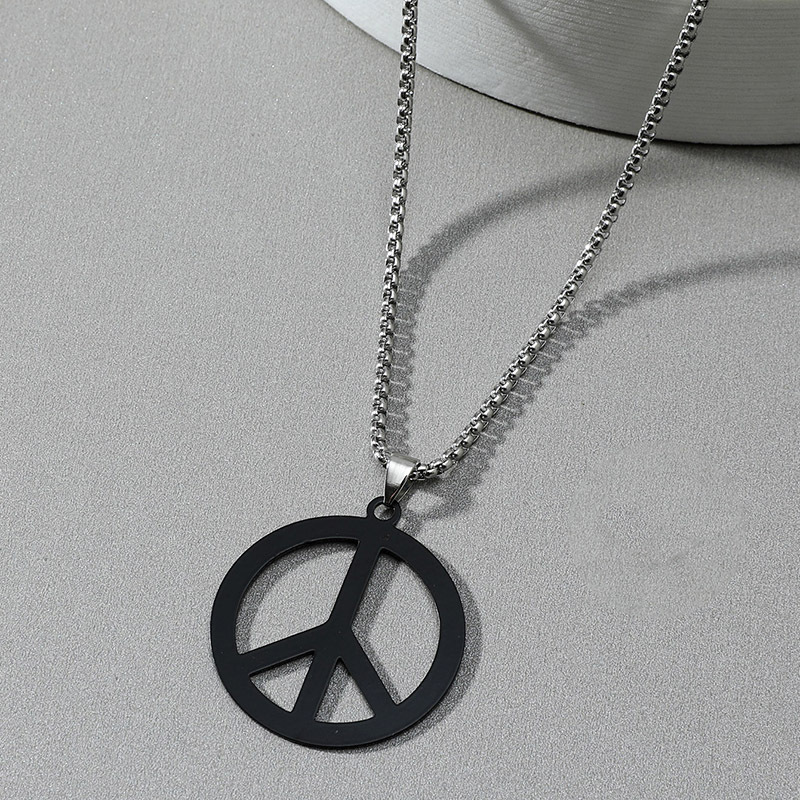 European and American Foreign Trade Jewelry Men's Necklace Titanium Steel Pendant Stainless Steel Korean Style Girl's Woolen Chain Anti-War Peace Sign