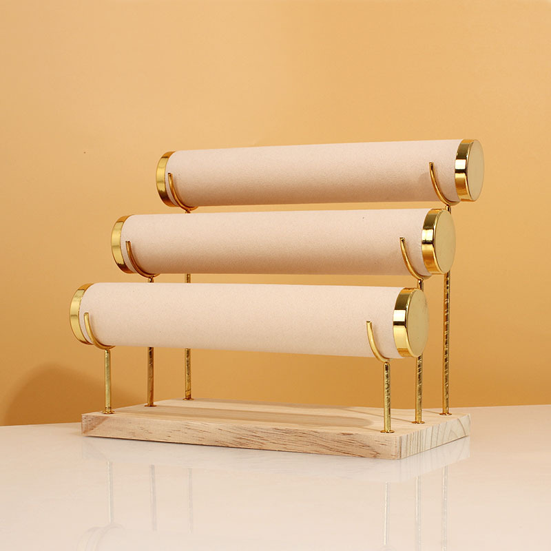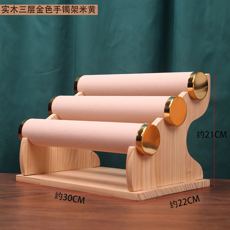 Golden three-layer bracelet rack beige (solid wood bracket)
