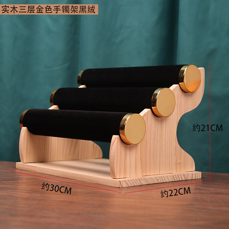 Golden three-layer bracelet rack Black Velvet (solid wood bracket)