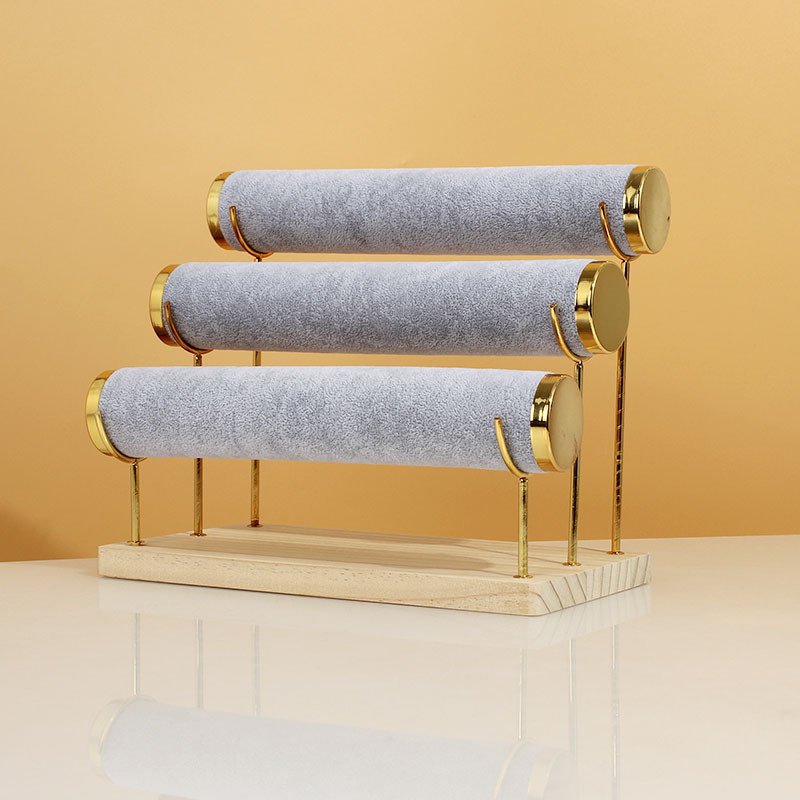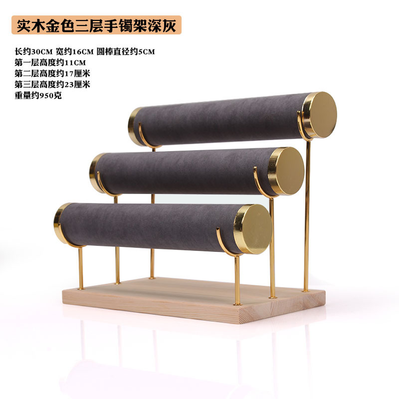New Bracelet Bracelet Display Stand Three-Layer Wooden Bottom Golden Iron Jewelry Props Display Watch Display Stand