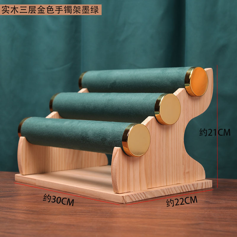 Color: Golden three-layer bracelet rack dark green (solid wood bracket)