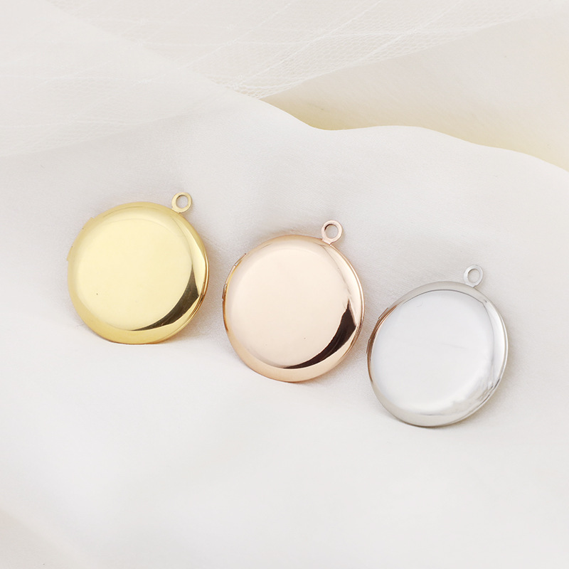 Color: [Necklace] glossy round photo box 20 * 23mm/Rose Gold