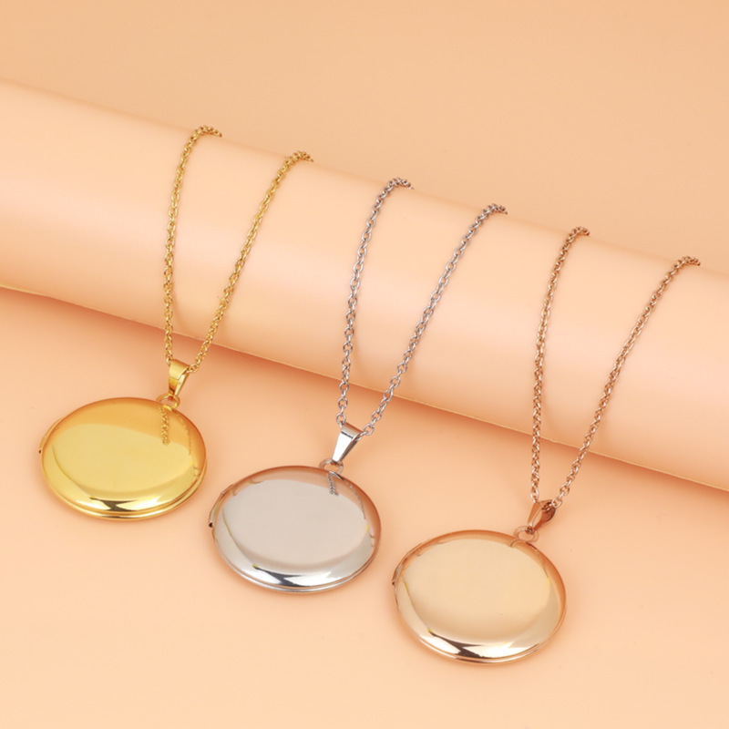 Color: [Necklace] glossy round photo box 20 * 23mm/steel color