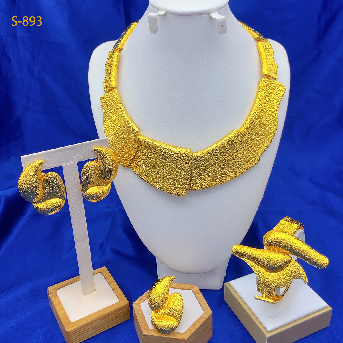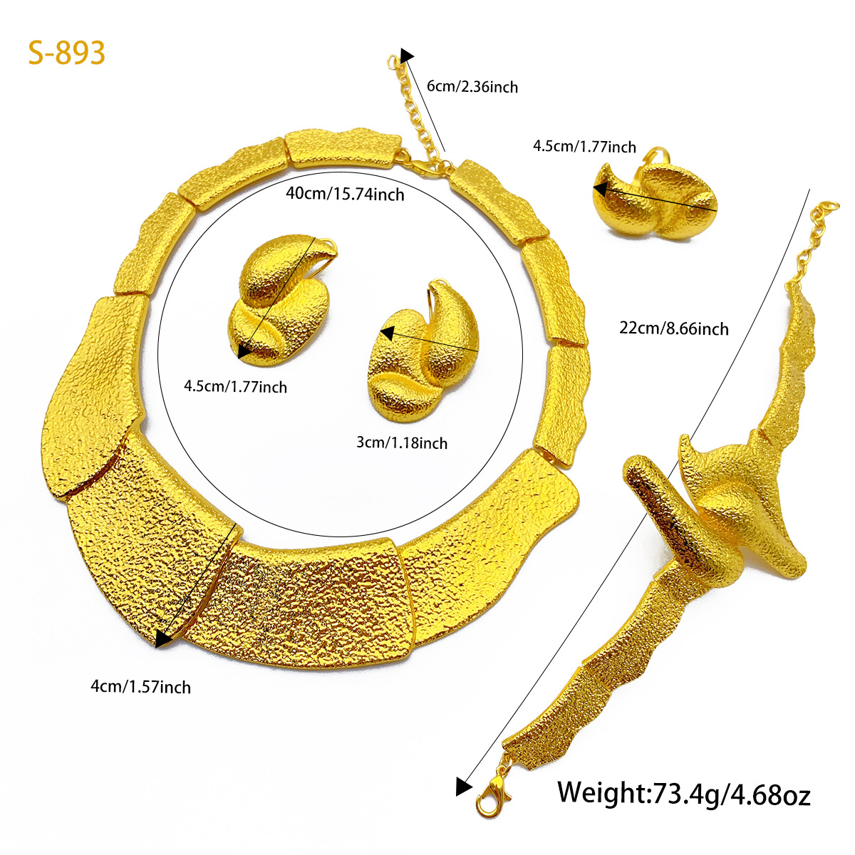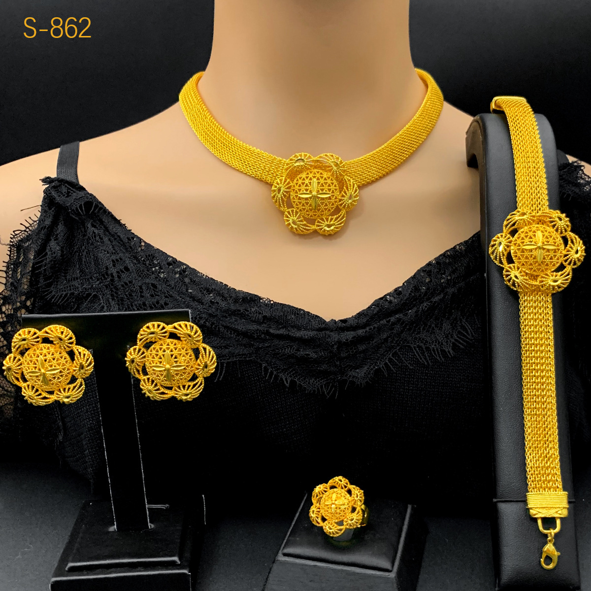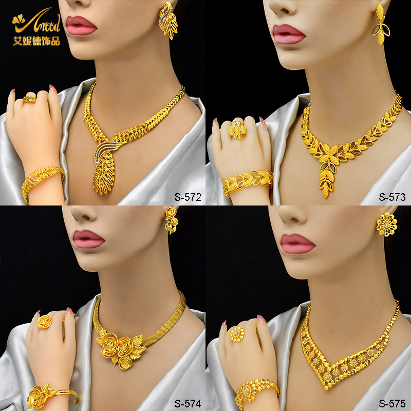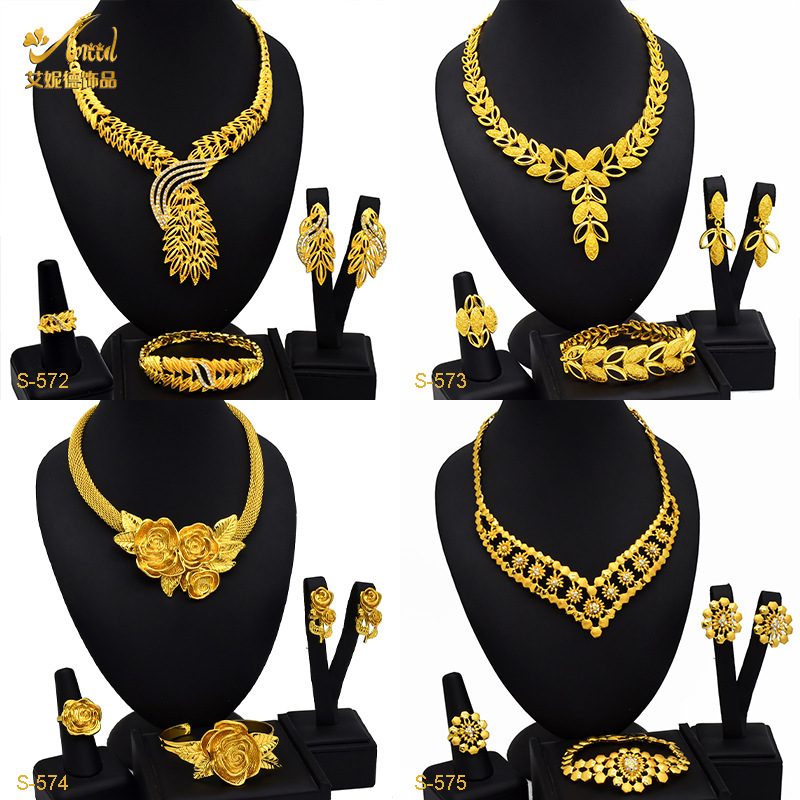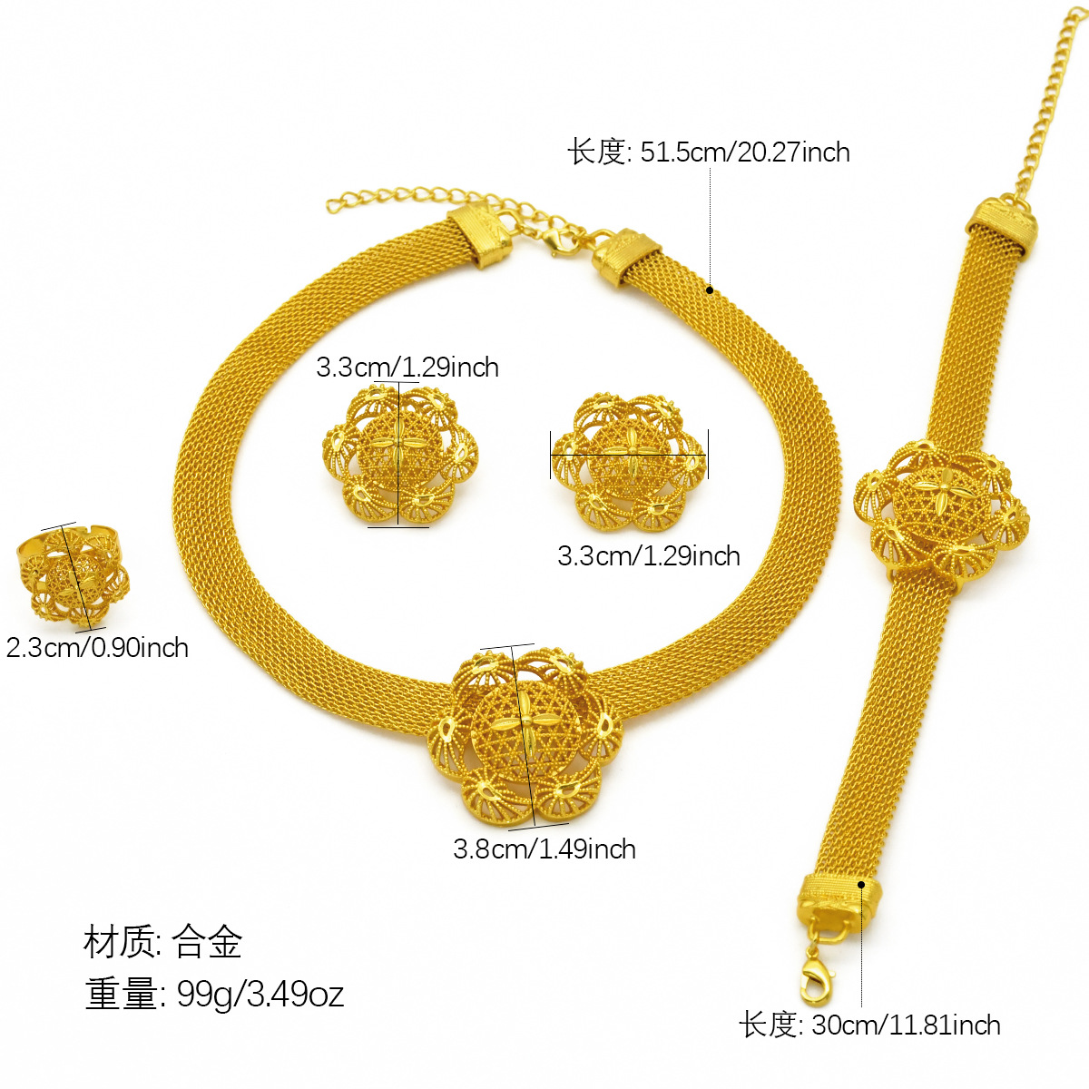 Scene: Ainid Dubai Bride 24K Gold Plated Necklace Bracelet Earrings Ring Jewelry Set