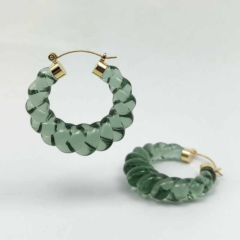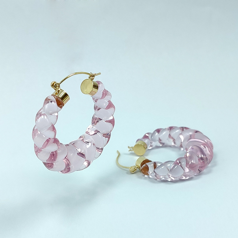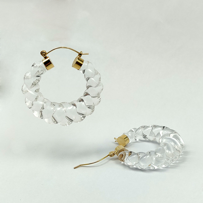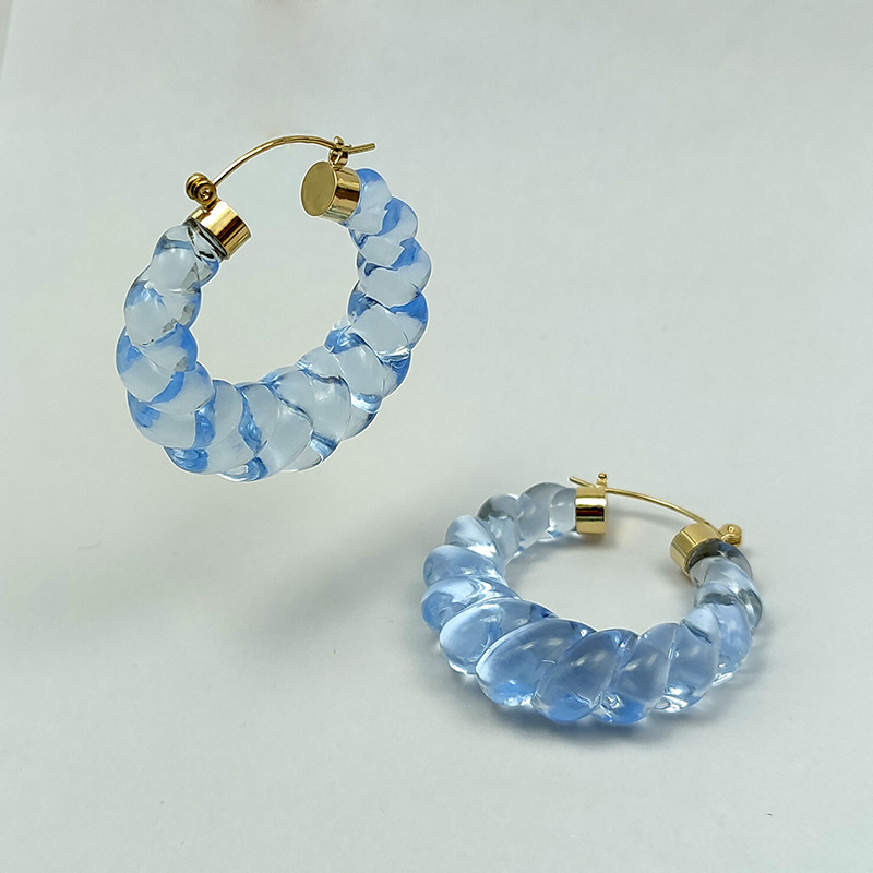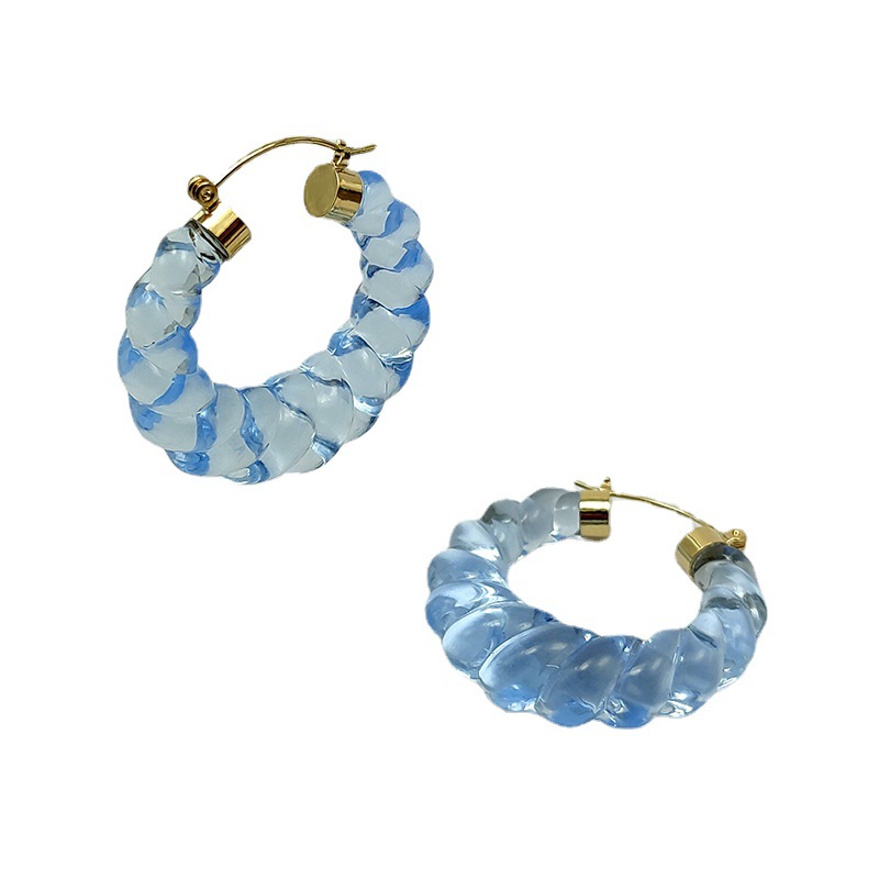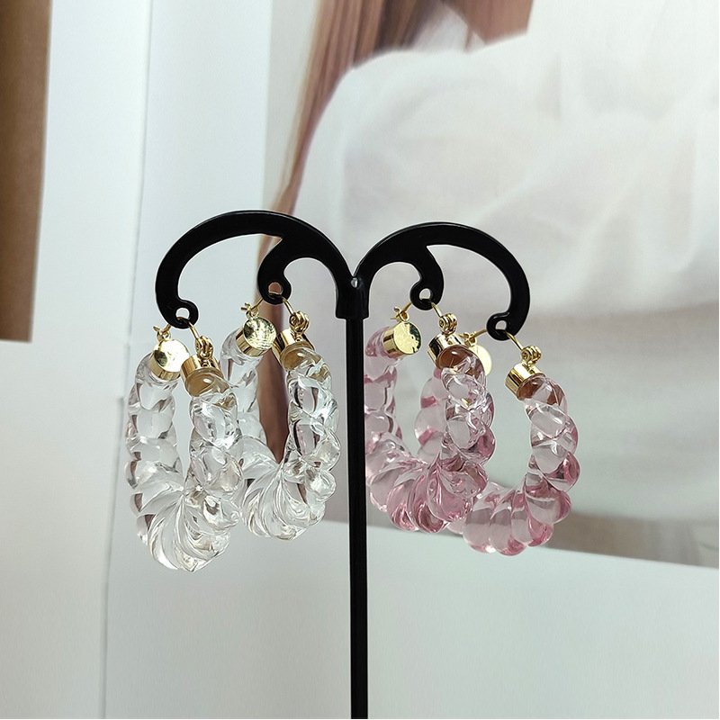 European and American style spiral transparent metal hook acrylic earrings twist fashion multi-color semi-transparent wave resin nail