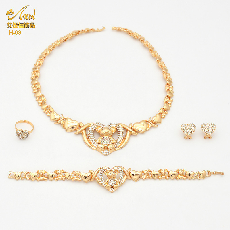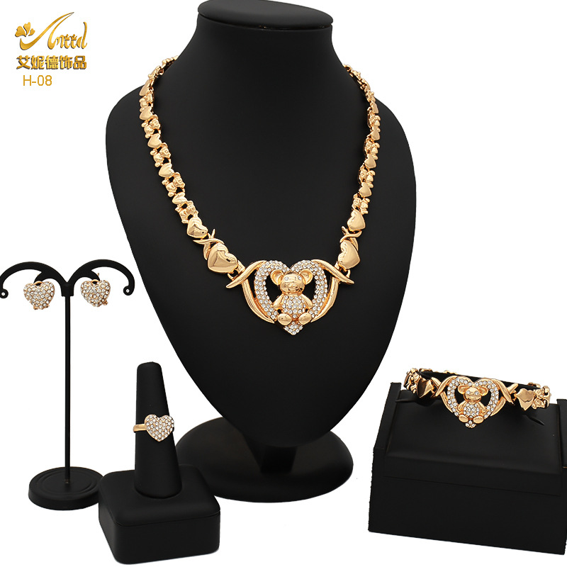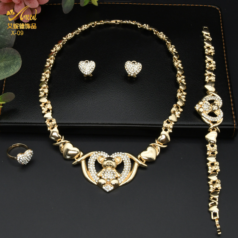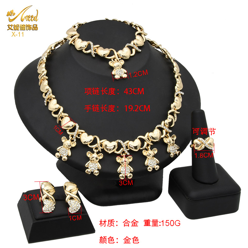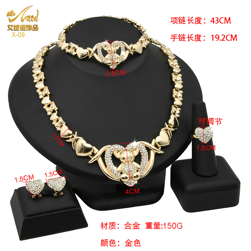 18K Dubai Gold Jewelry Set Middle Eastern Women African Bridal Necklace Ring Earrings Bracelet Four-Piece Set Ready in Stock