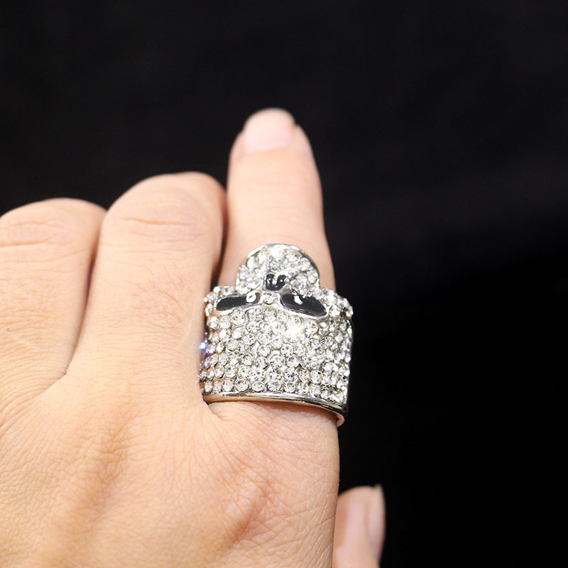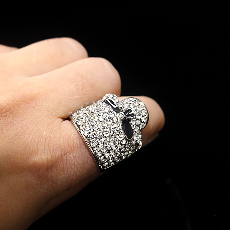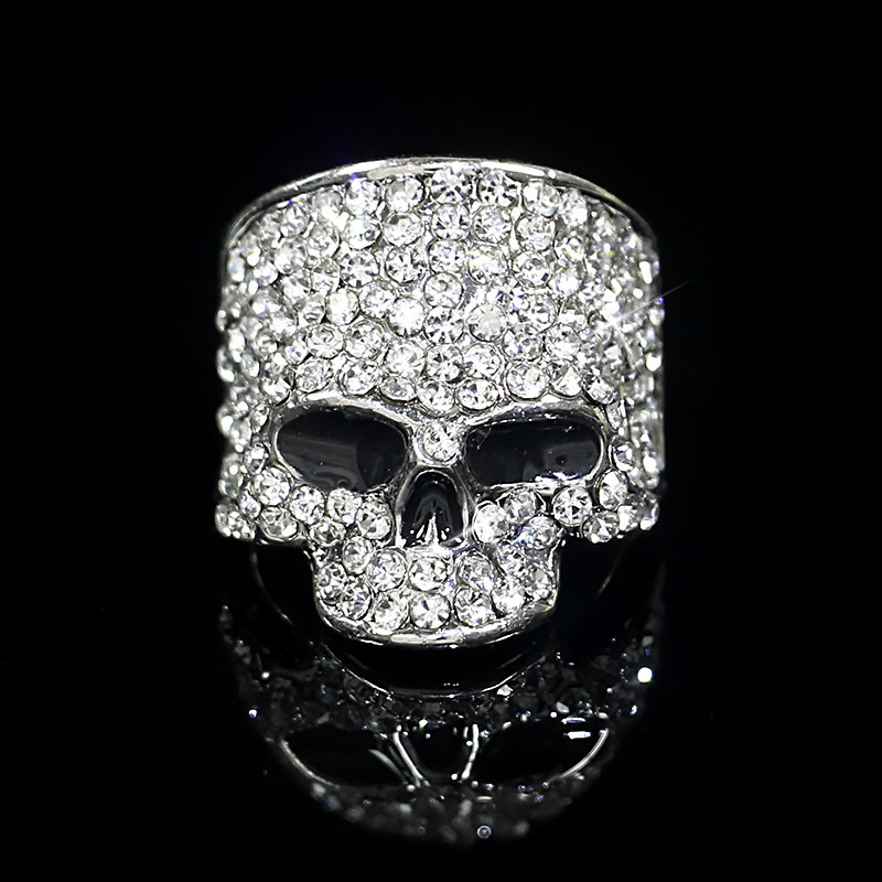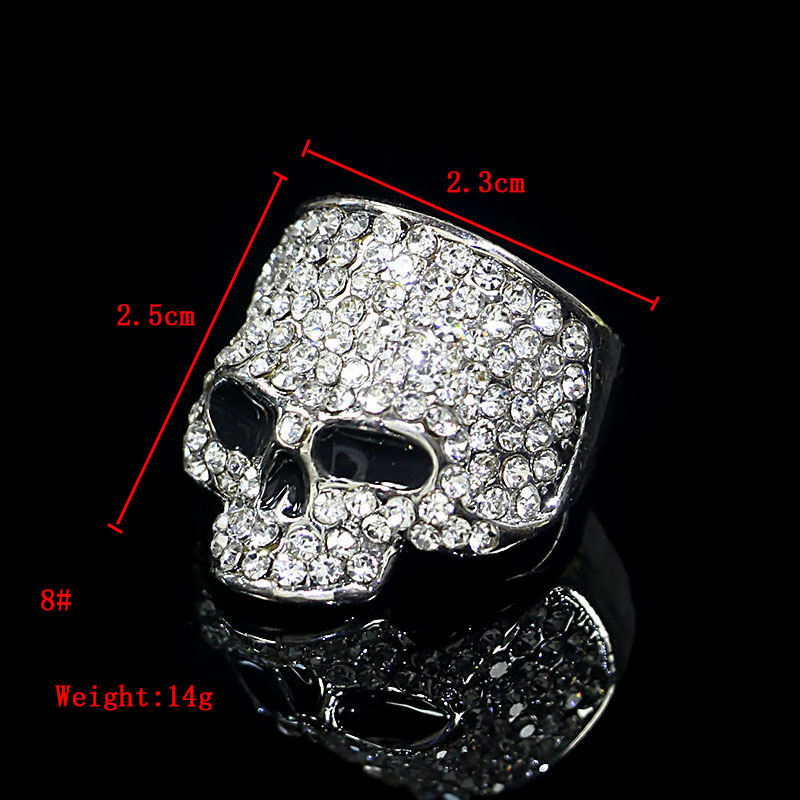 Cross-Border European and American Creative Halloween Skull Ring, Personalized and Exaggerated Men's Diamond-Encrusted Metal Fashion Rock Ring
