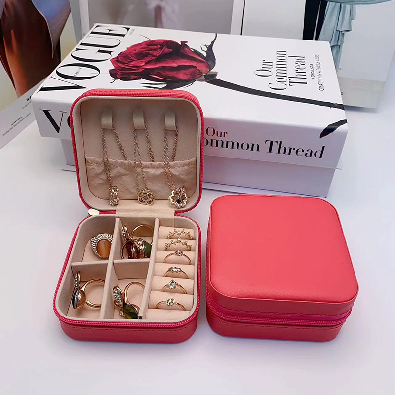 Specification model: Pu gold zipper rose red-white velvet inside; 10*10*5