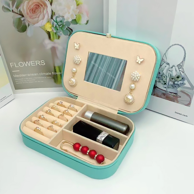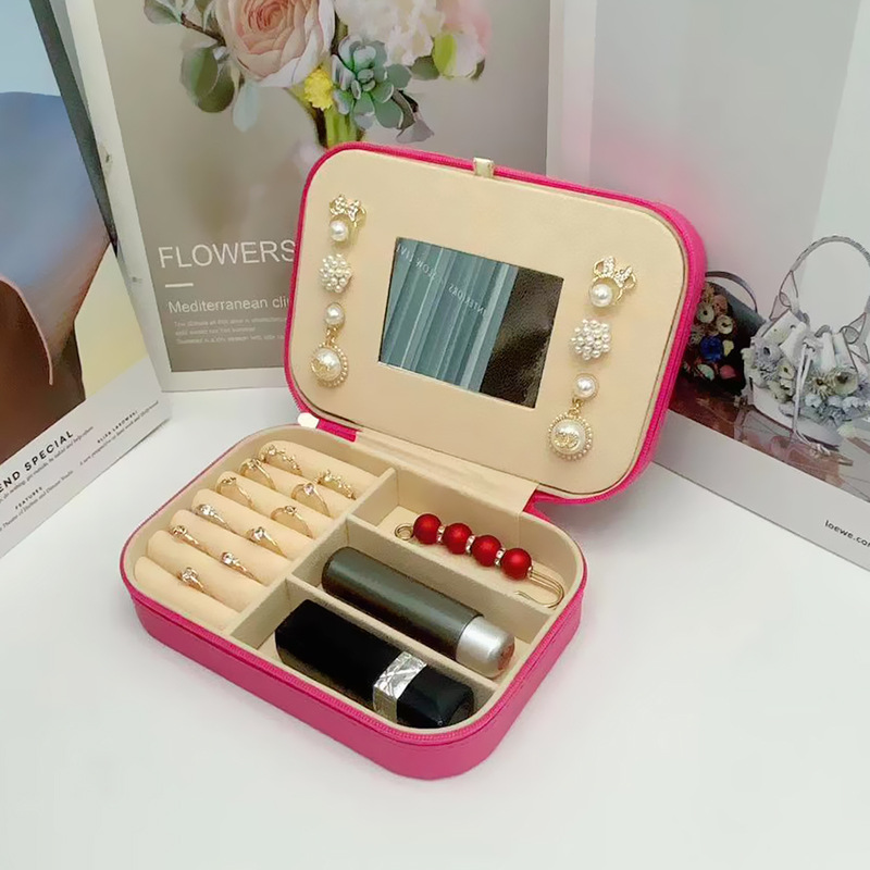 Specifications and models: Medium zipper mirror style--rose red; 16*11.5*5