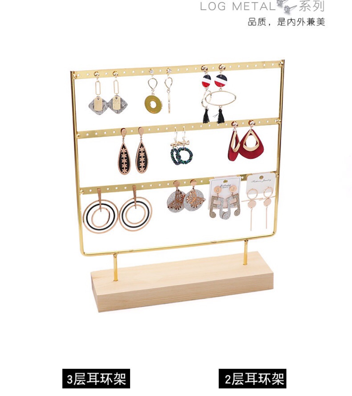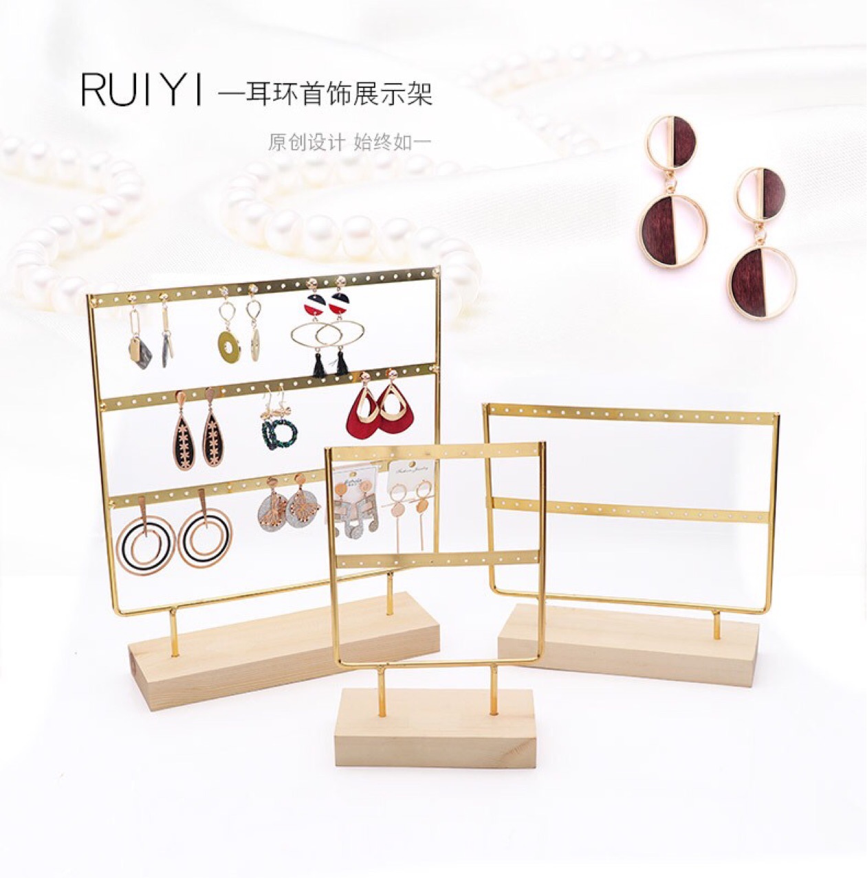Wooden Bottom Iron Earring Rack Creative Jewelry Rack Hanging Earrings Earrings Earrings Storage Rack Jewelry Display Shelf Home