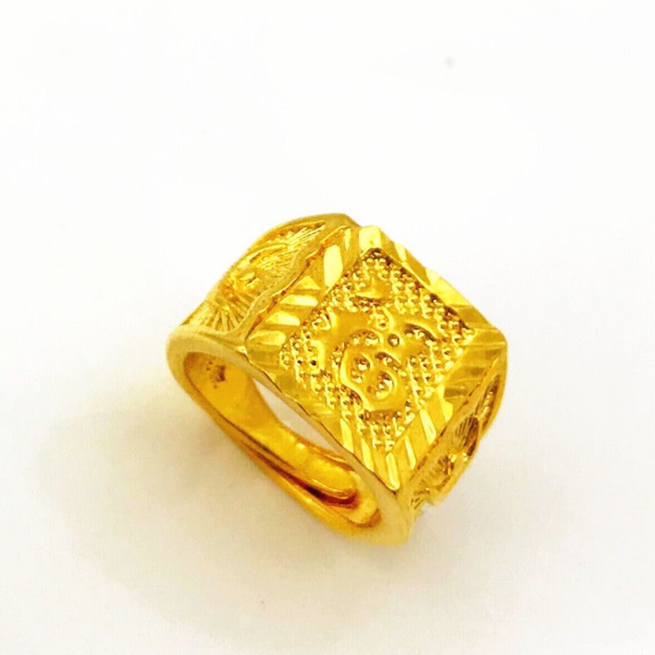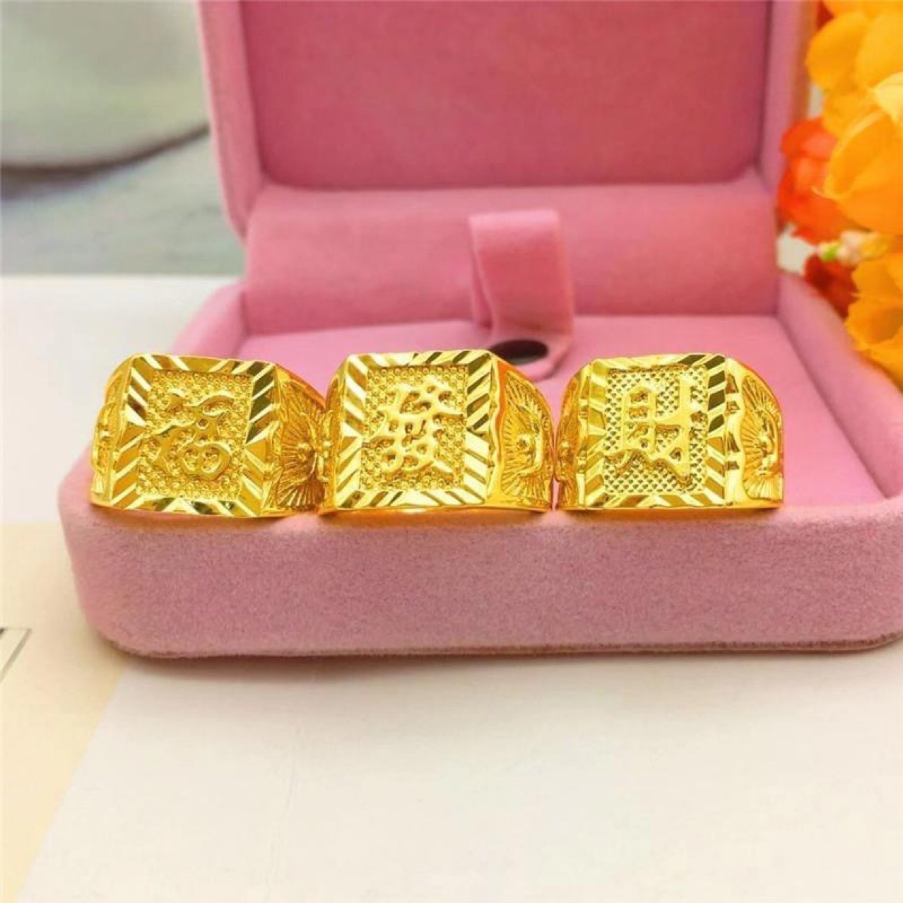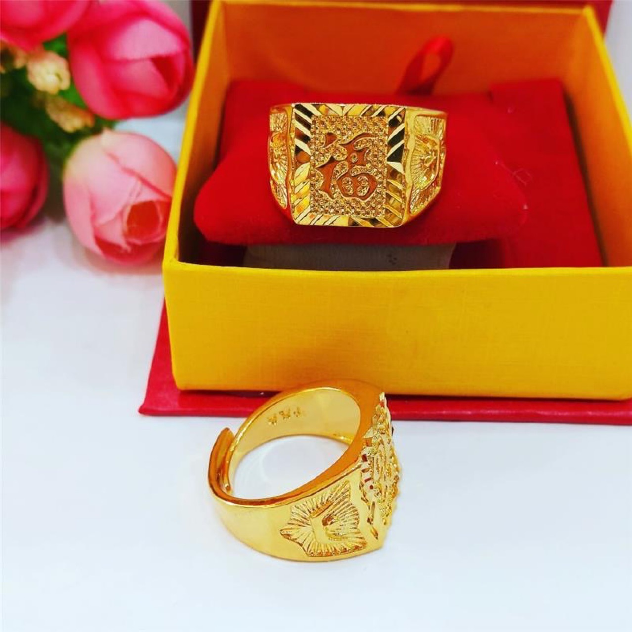 High Imitation Vietnam Sand Gold Men's Ring Aggressive Fortune Loose Mouth Adjustable Size Gold Engraving Long Fade