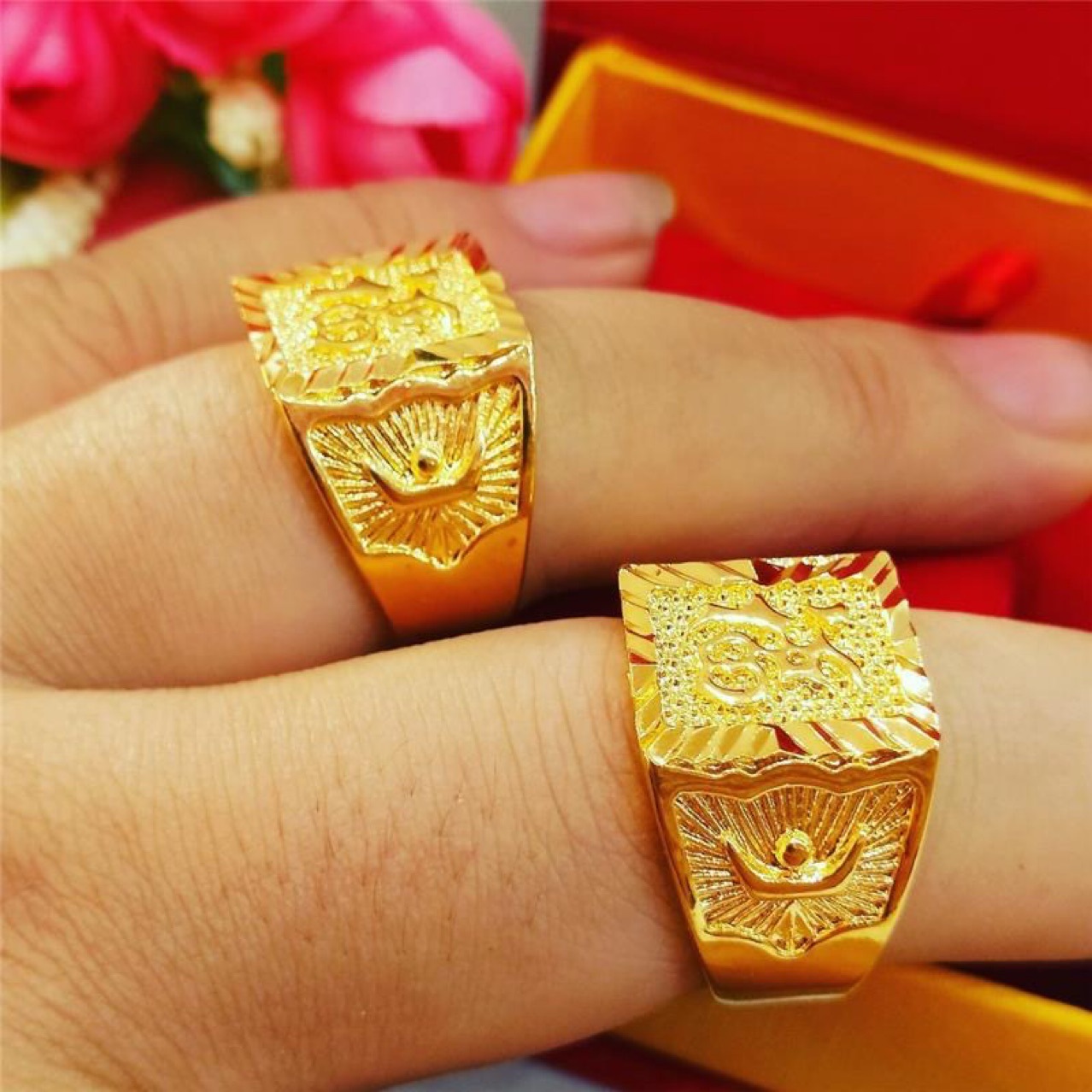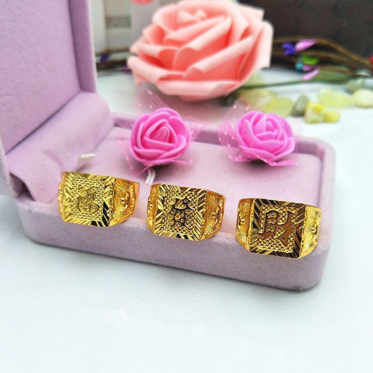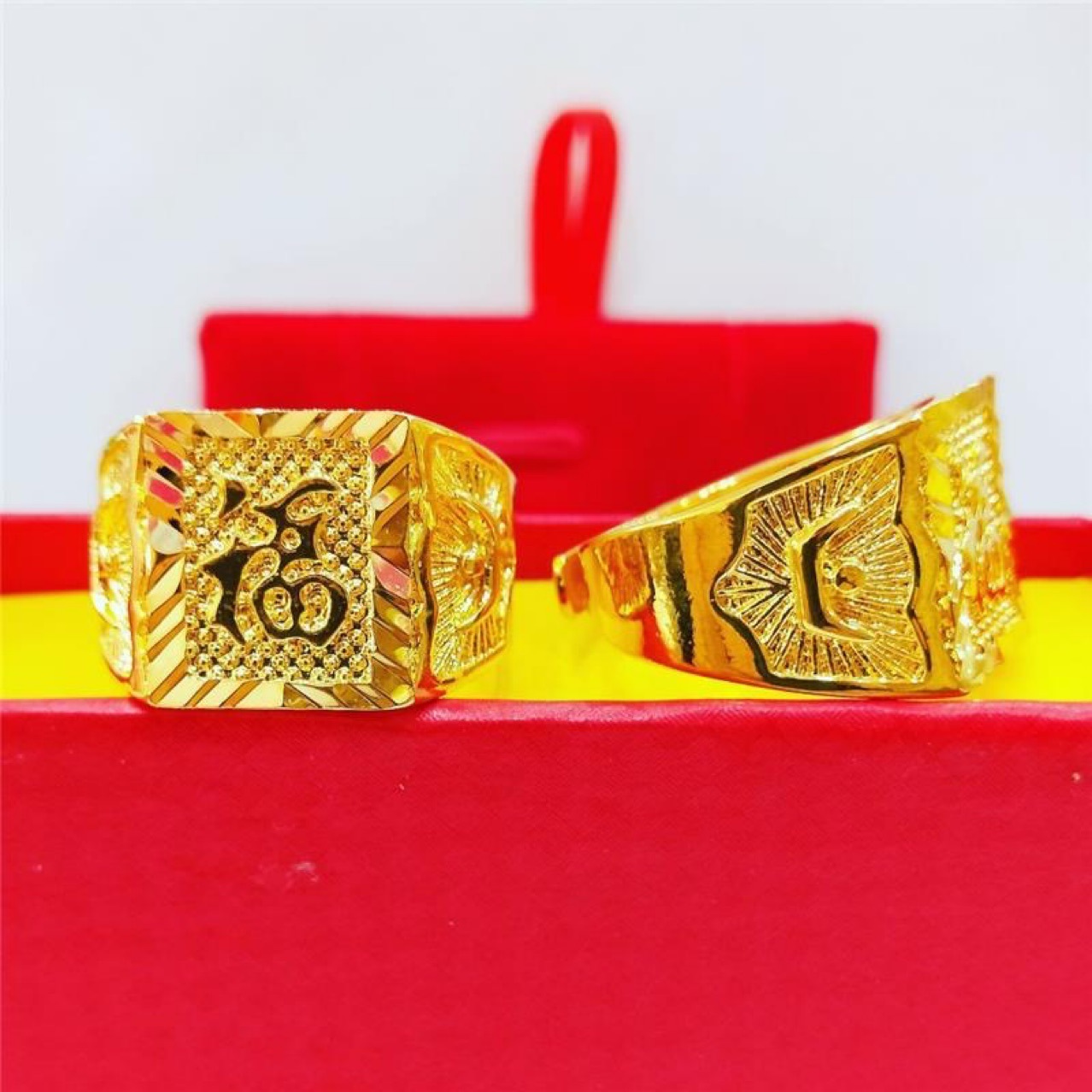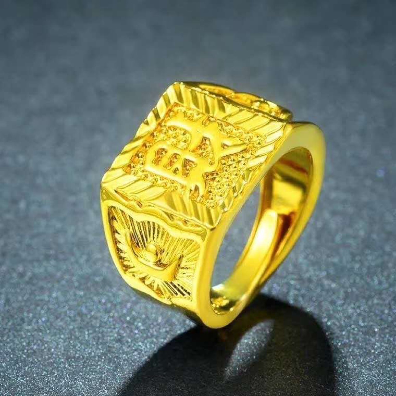 High Imitation Vietnam Sand Gold Men's Ring Aggressive Fortune Loose Mouth Adjustable Size Gold Engraving Long Fade