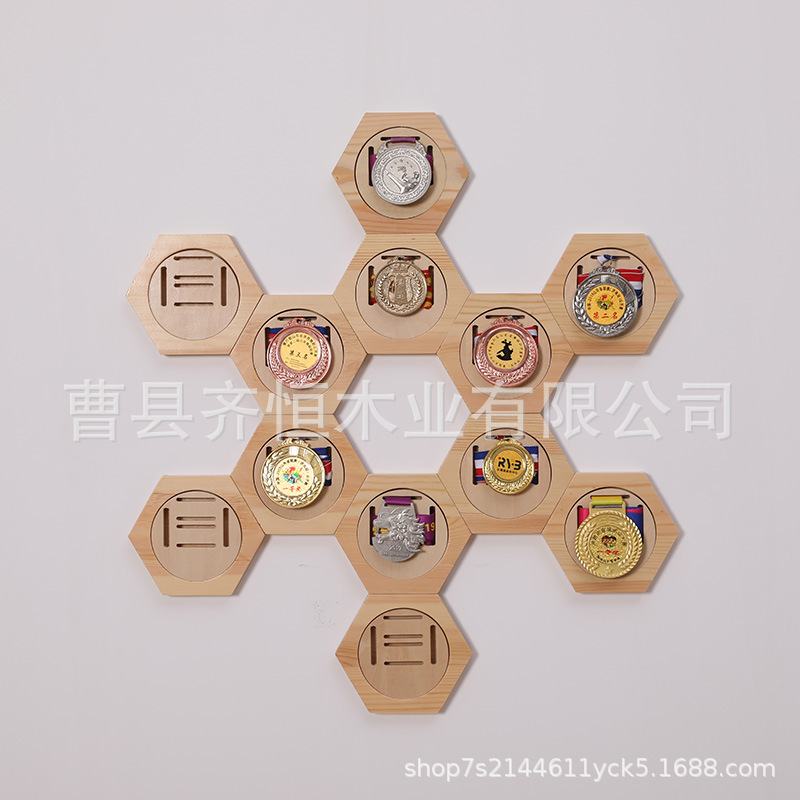 Cross-border hot-selling wooden honeycomb combination medal display rack hexagonal wooden medal rack children's entrance DIY