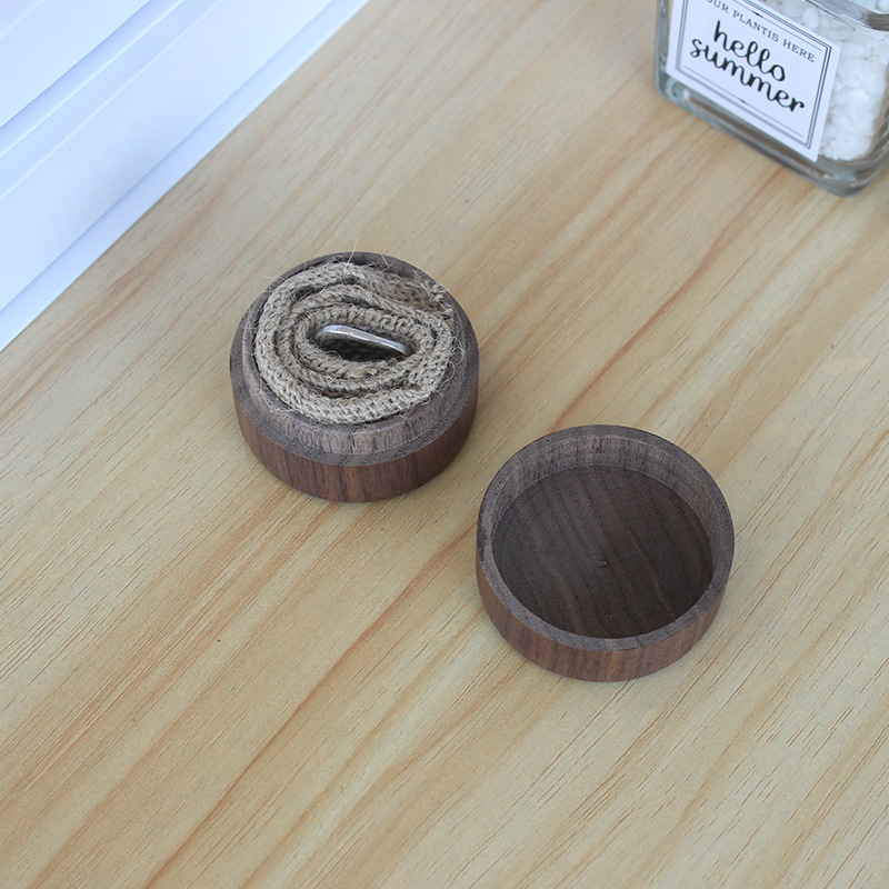 Round Wooden Box Black Walnut Round Ring Box Solid Wood Gift Storage Box Earrings Necklace Packaging Jewelry Box Small Wooden Box