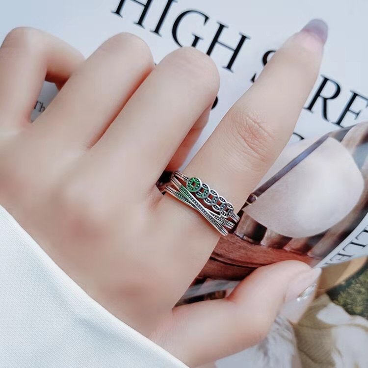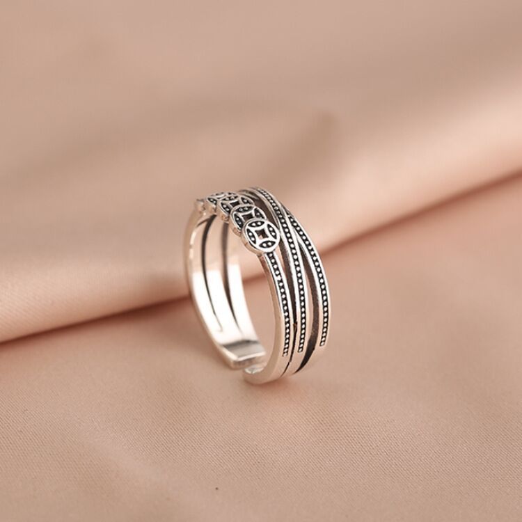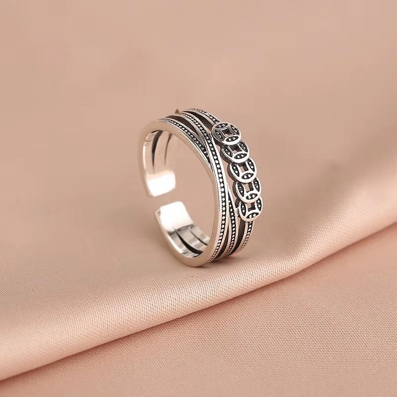 ins trendy five Fu copper coins lucky five emperors coin open ring female retro distressed lucky index finger ring manufacturer