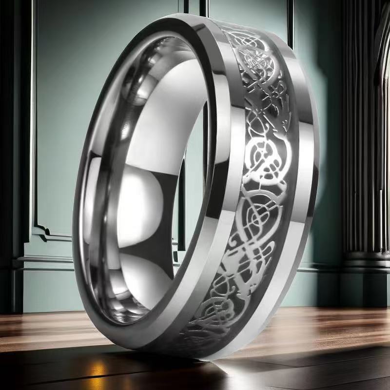 Color: 6-b-4 steel color black background silver piece chinese dragon (never fade)