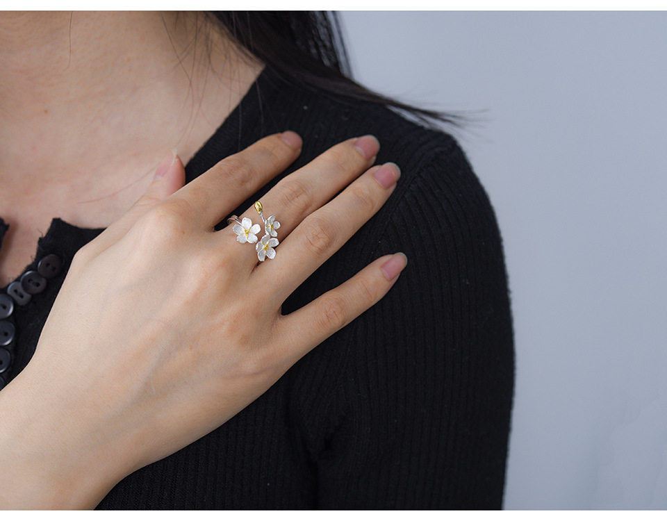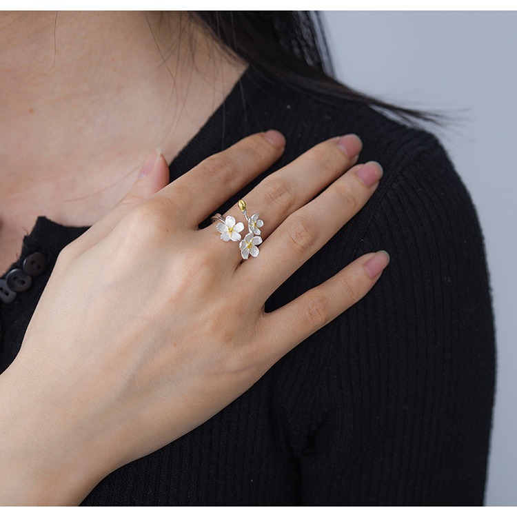 尺寸:戒面长*宽(开口状态)20*15.5MM,单朵大花最宽处:9.8MM
