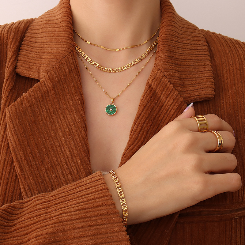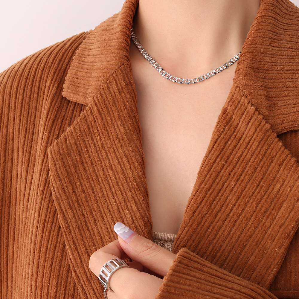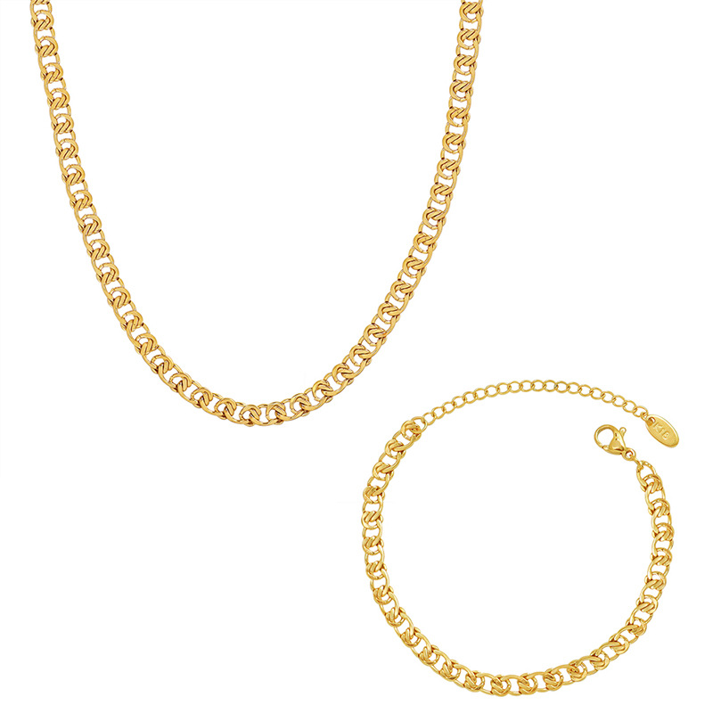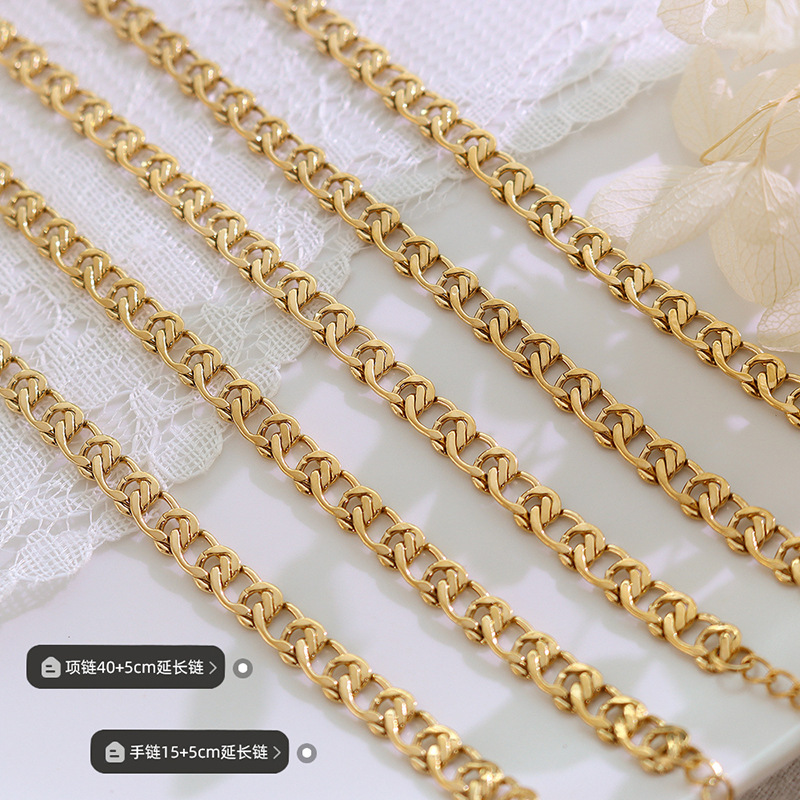 Stainless steel chain European and American ins Wind hip hop tide ring ring buckle bracelet necklace set titanium steel plated 18K gold