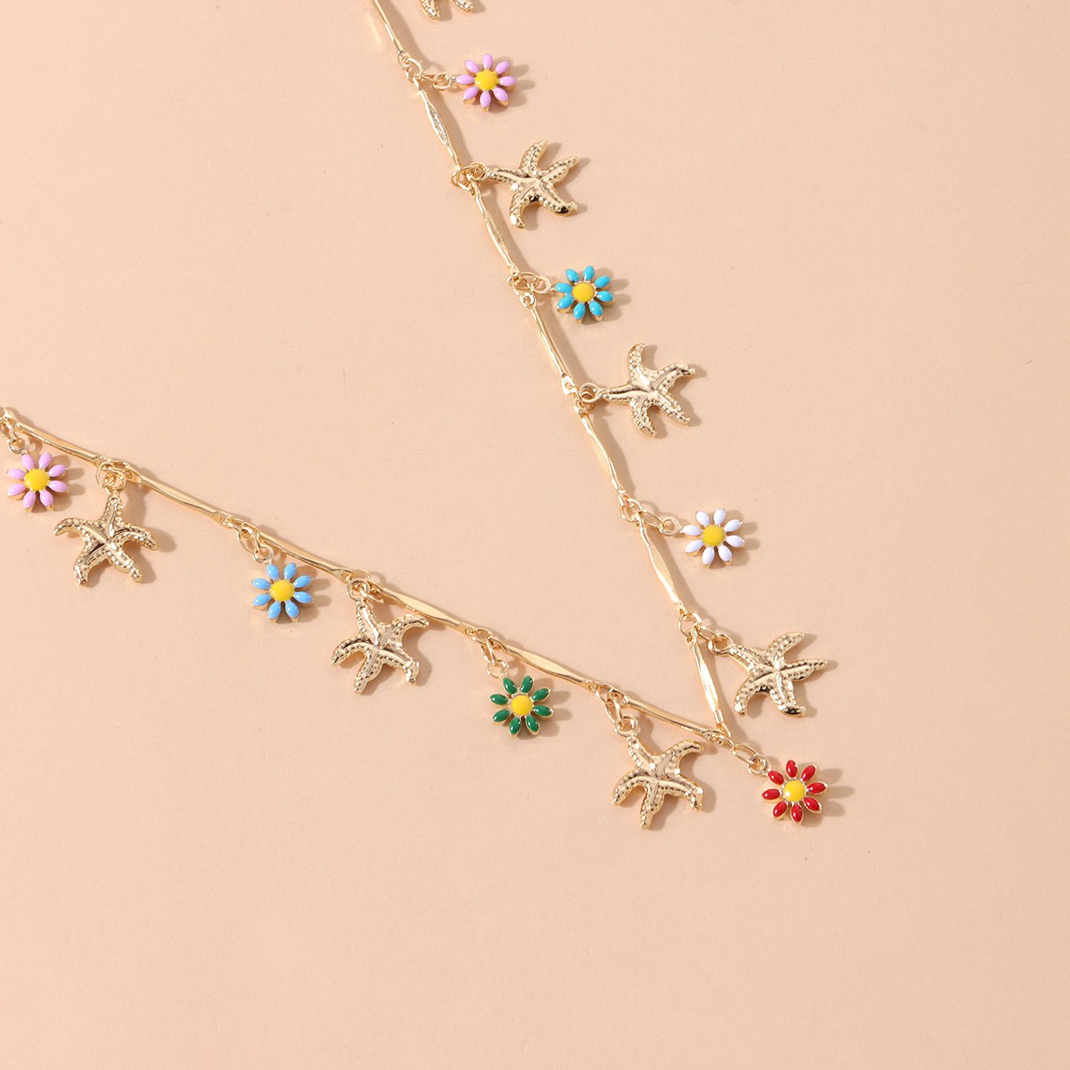 European and American cross-border jewelry multi-element Hawaiian leisure style necklace fashion straight tube starfish flower Daisy necklace