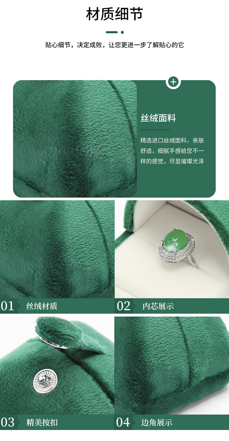 Specifications and models: Double box velvet model-malachite green; single ring 6.5*7*6