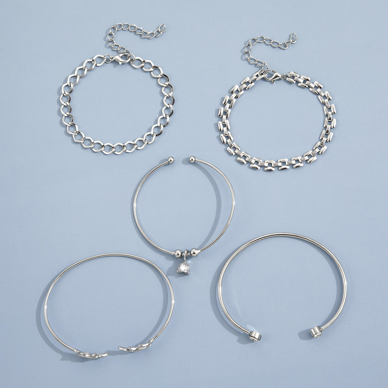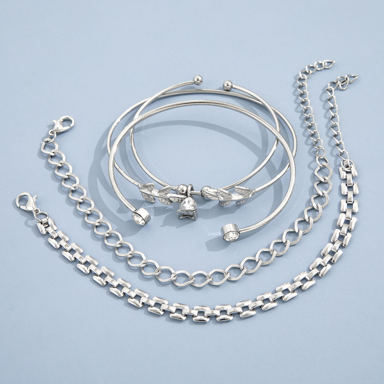 European and American New Geometric Leaf Point Diamond Beaded Love Rhinestone Opening Bracelet Women's Bracelet 5-piece Set
