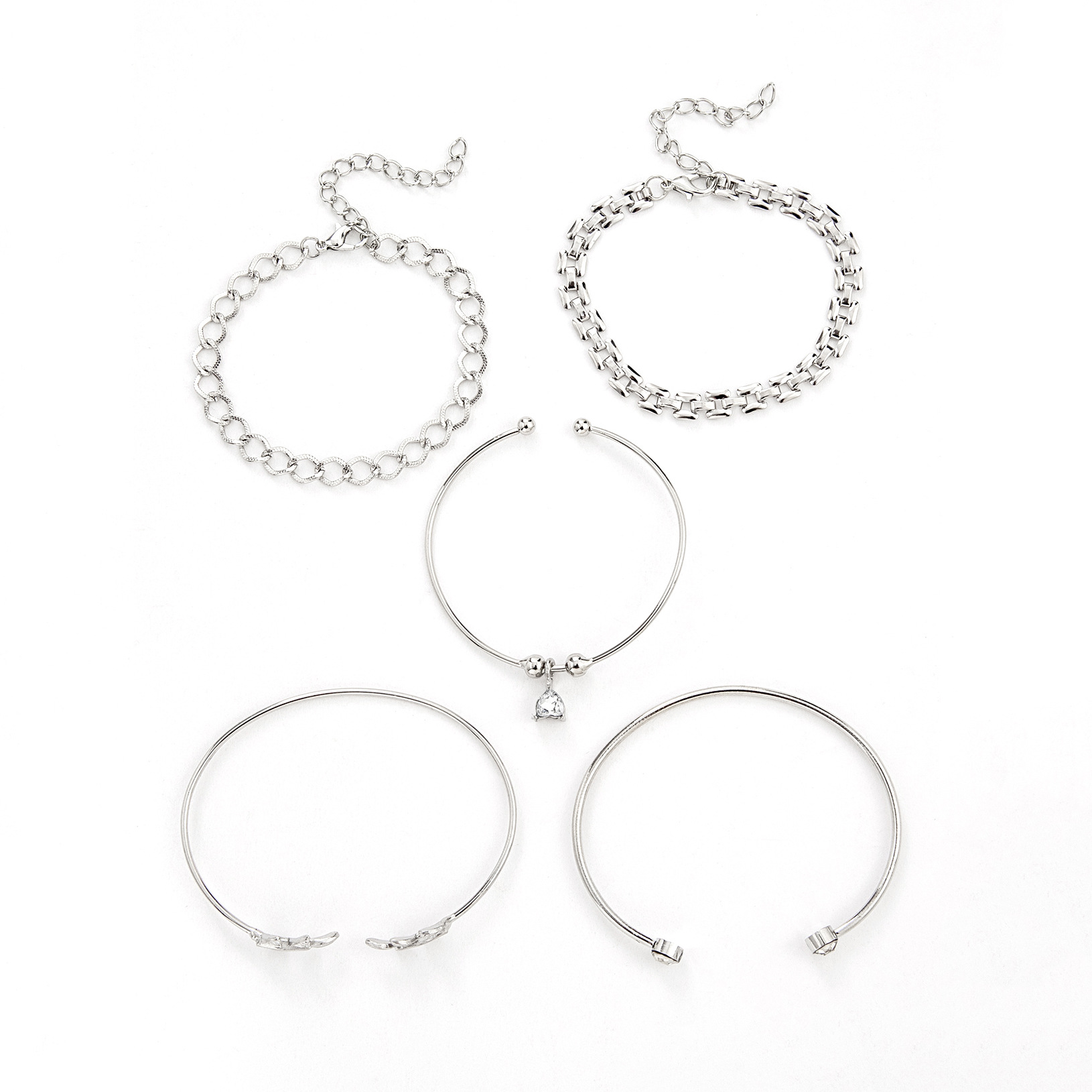 • 产品名称:欧美新款 几何型叶子点钻串珠爱心水钻开口手镯 女士手链5件套