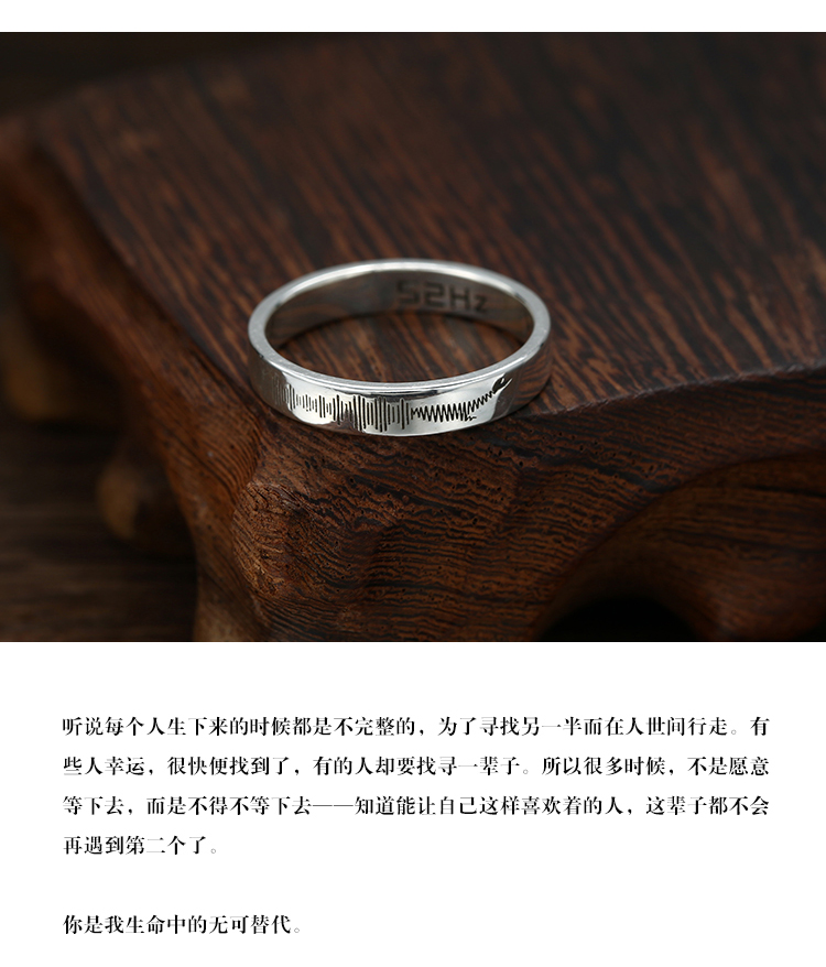 52Hz Ring Men's Trendy Women's Niche Design Light Luxury ins Adjustable Opening Retro Couple's Ring Original