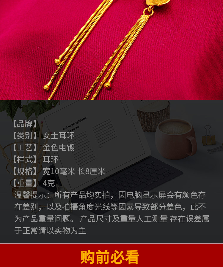 Gold-plated earrings for women South Korea new long tassel earrings elegant Internet celebrity earrings Vietnam gold earrings fashion